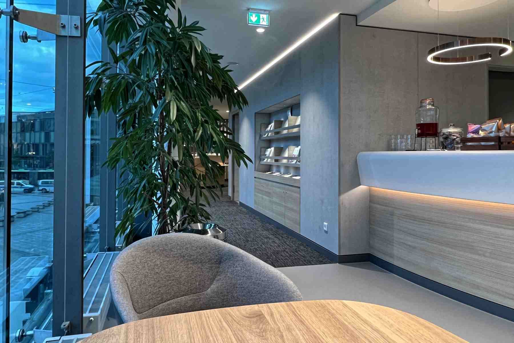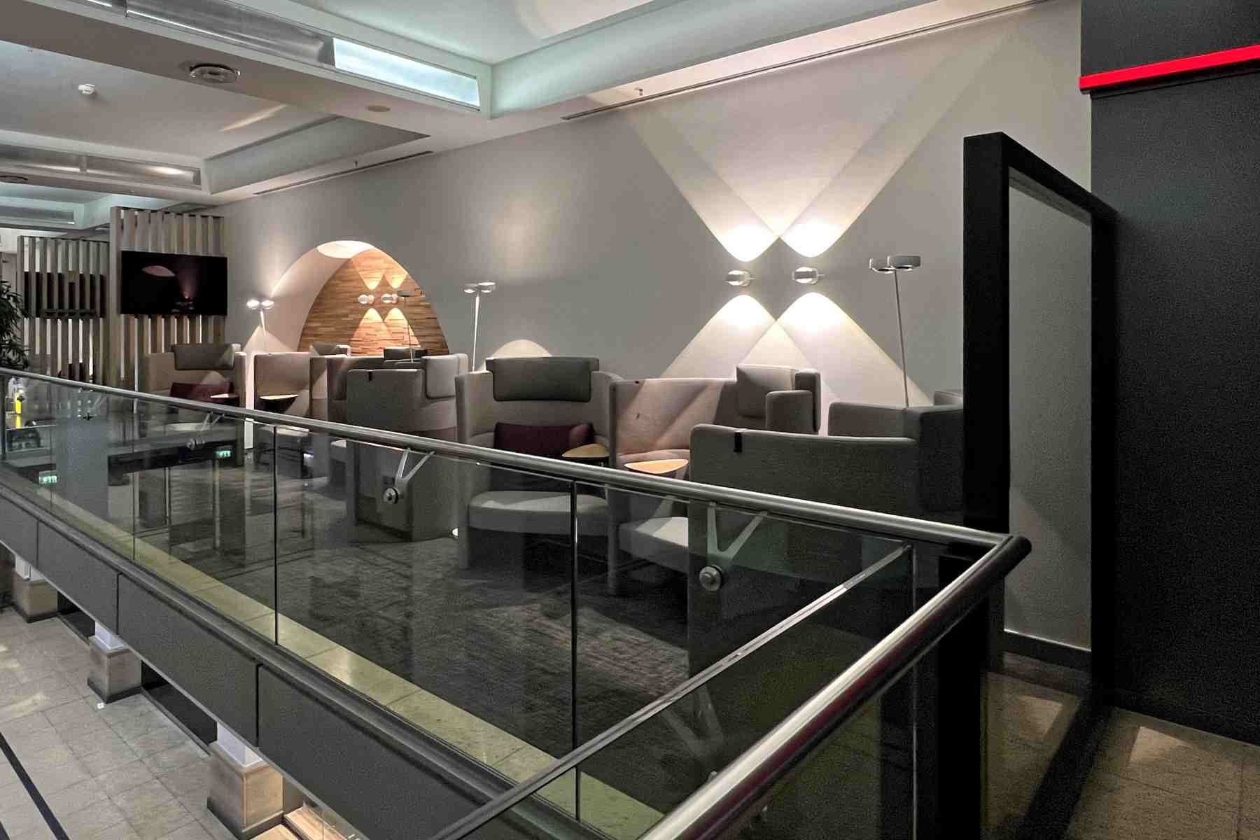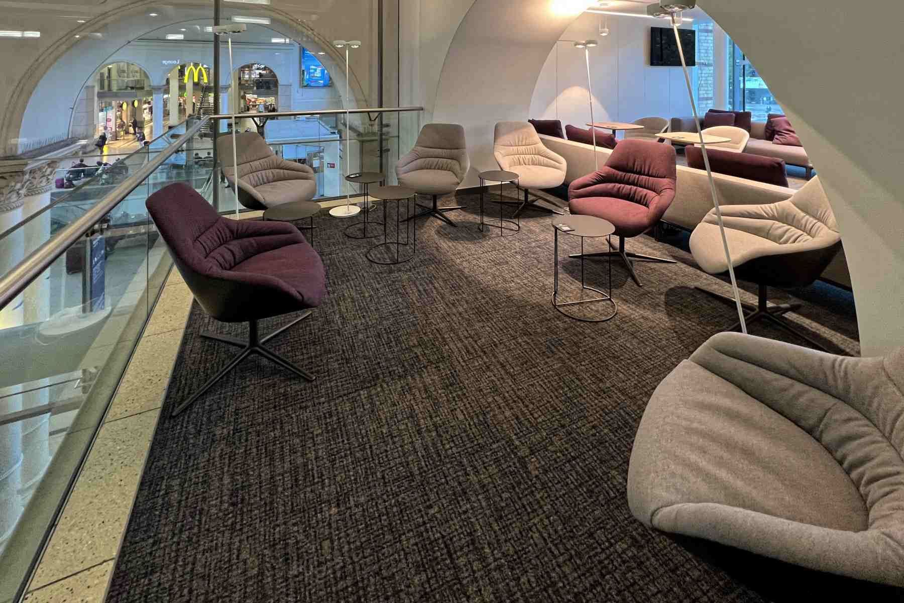 Die Lounge befindet sich in im 1. Obergeschoss über dem Reisezentrum.