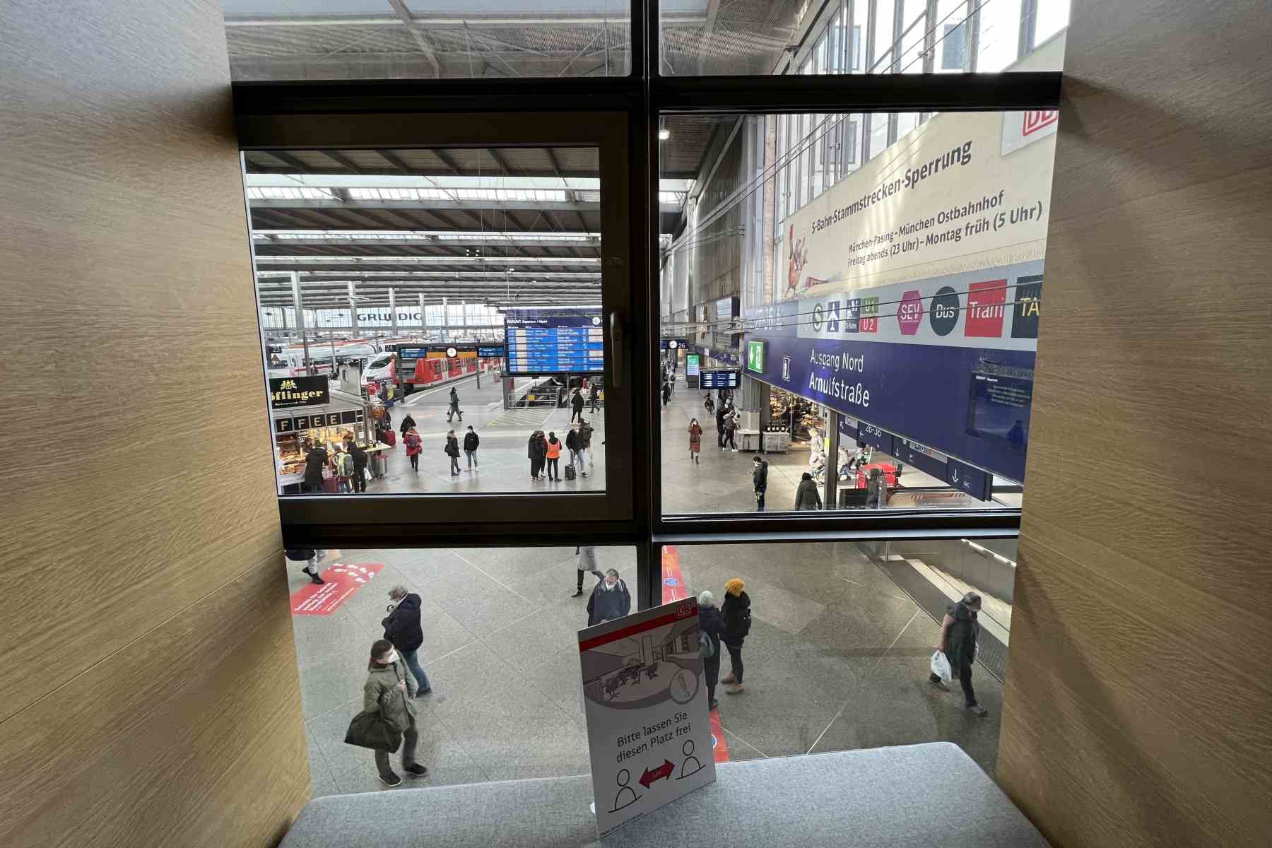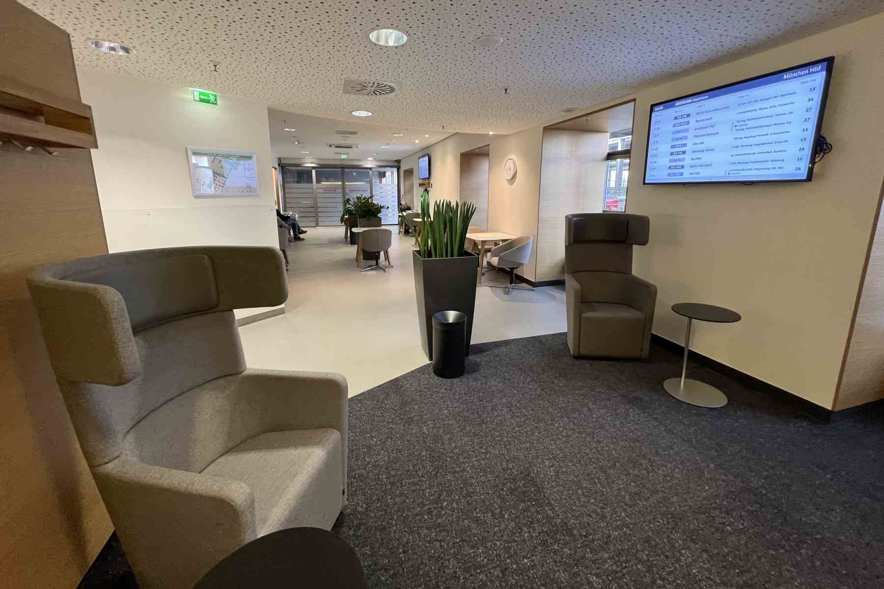 Die DB Premium Lounge in München befindet sich im 1. Obergeschoss etwa in Höhe von Gleis 25.