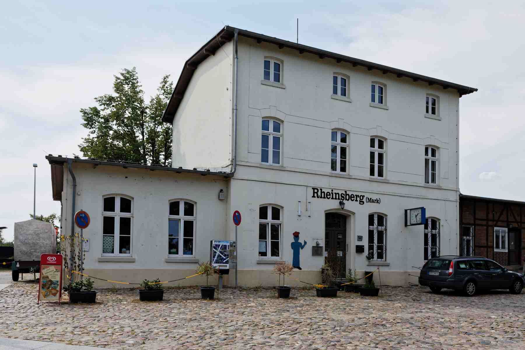 Der Bahnhof in Rheinsberg bildet das Ende der Bahnstrecke von Löwenberg (Mark) nach Rheinsberg. Von Berlin oder Stralsund kommend muss in Löwenberg umgestiegen werden, die Züge nach Rheinsberg verkehren im Zwei-Stunden-Takt.