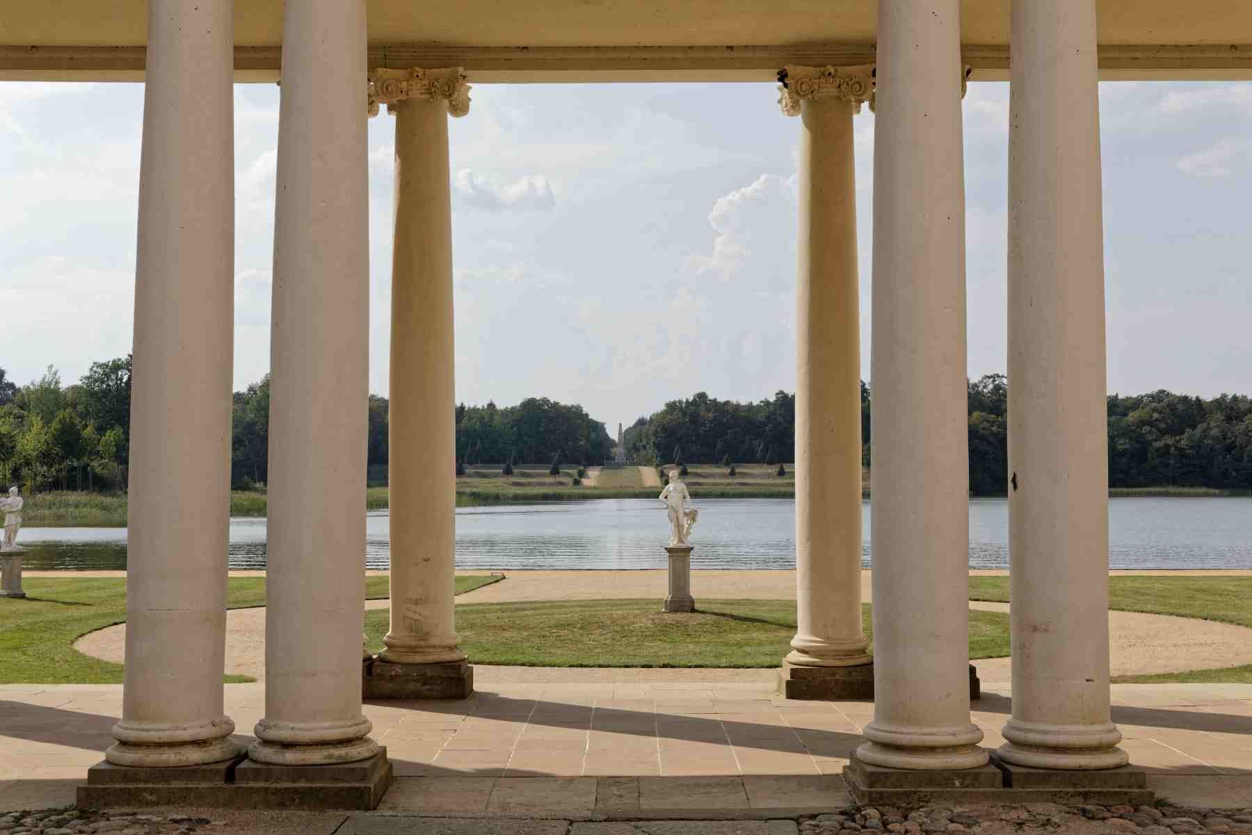 Das Schloss ist in Richtung Grienericksee ausgerichtet und der 26 ha große Schlosspark wurde um die Südspitze des Sees angelegt. Der Park wurde als Französischer Garten gestaltet. In dem Park befinden sich neben dem Salon auch Grotten, die Orangerie und ein Obelisk der auffällig genau dem Schloss gegenüber am andern Seeufer steht.