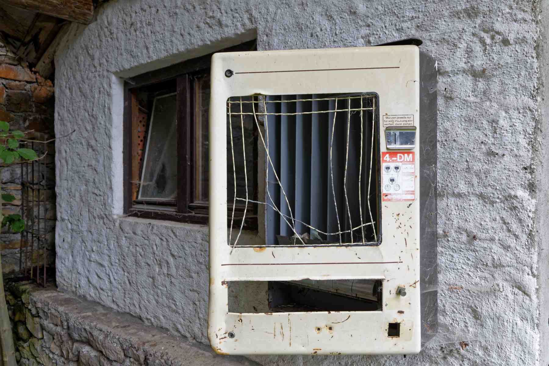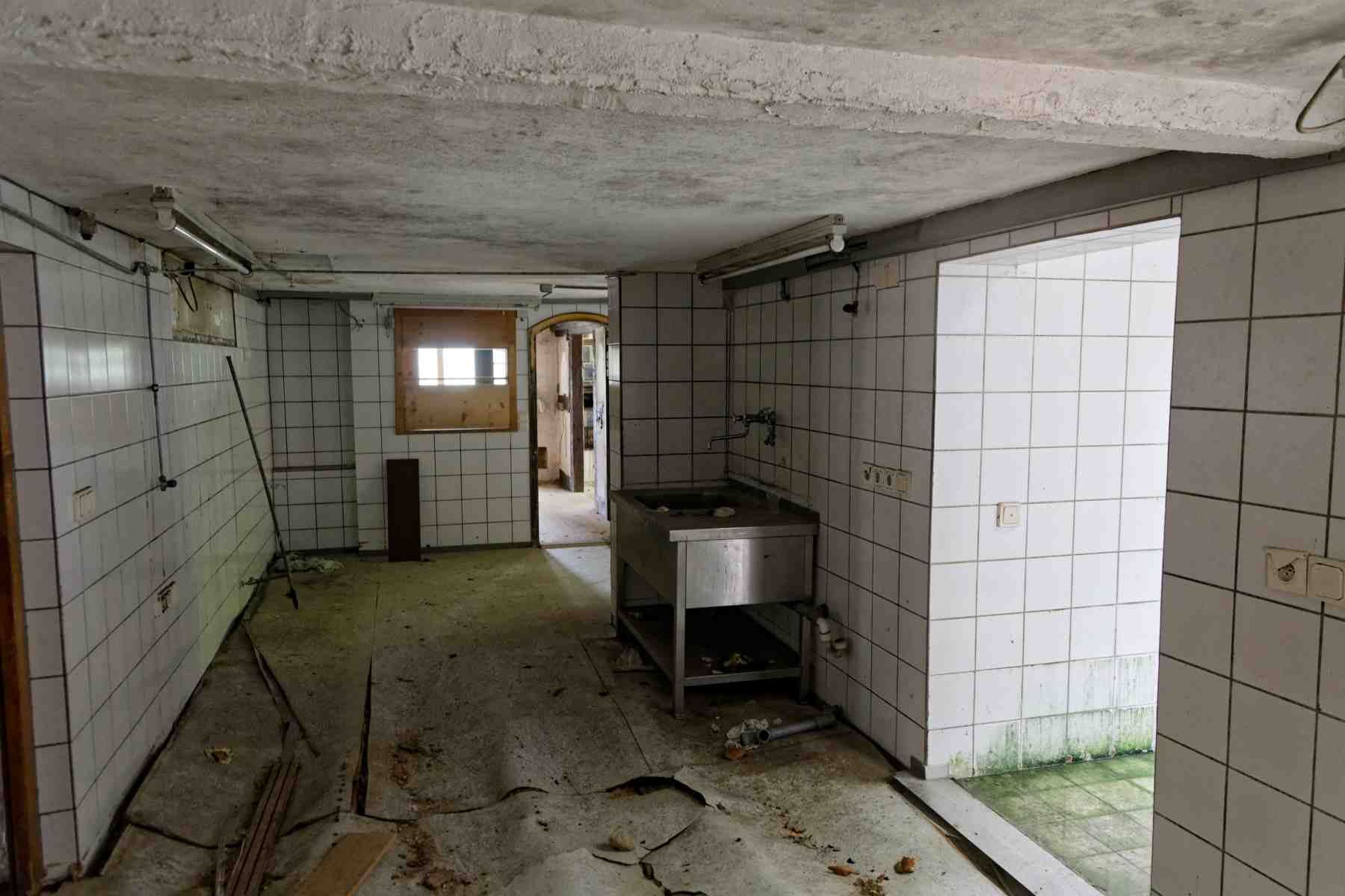 Am Nebengebäude rostete ein Zigarettenautomat mit DM-Einwurf dahin, so dass man davon ausgeben kann das dieses Objekt schon eine lange Zeit leer steht.