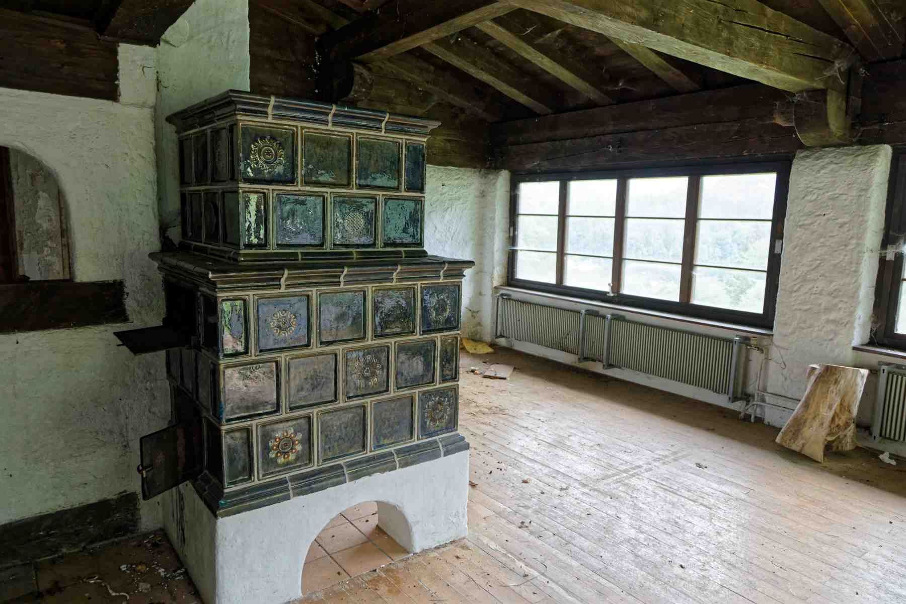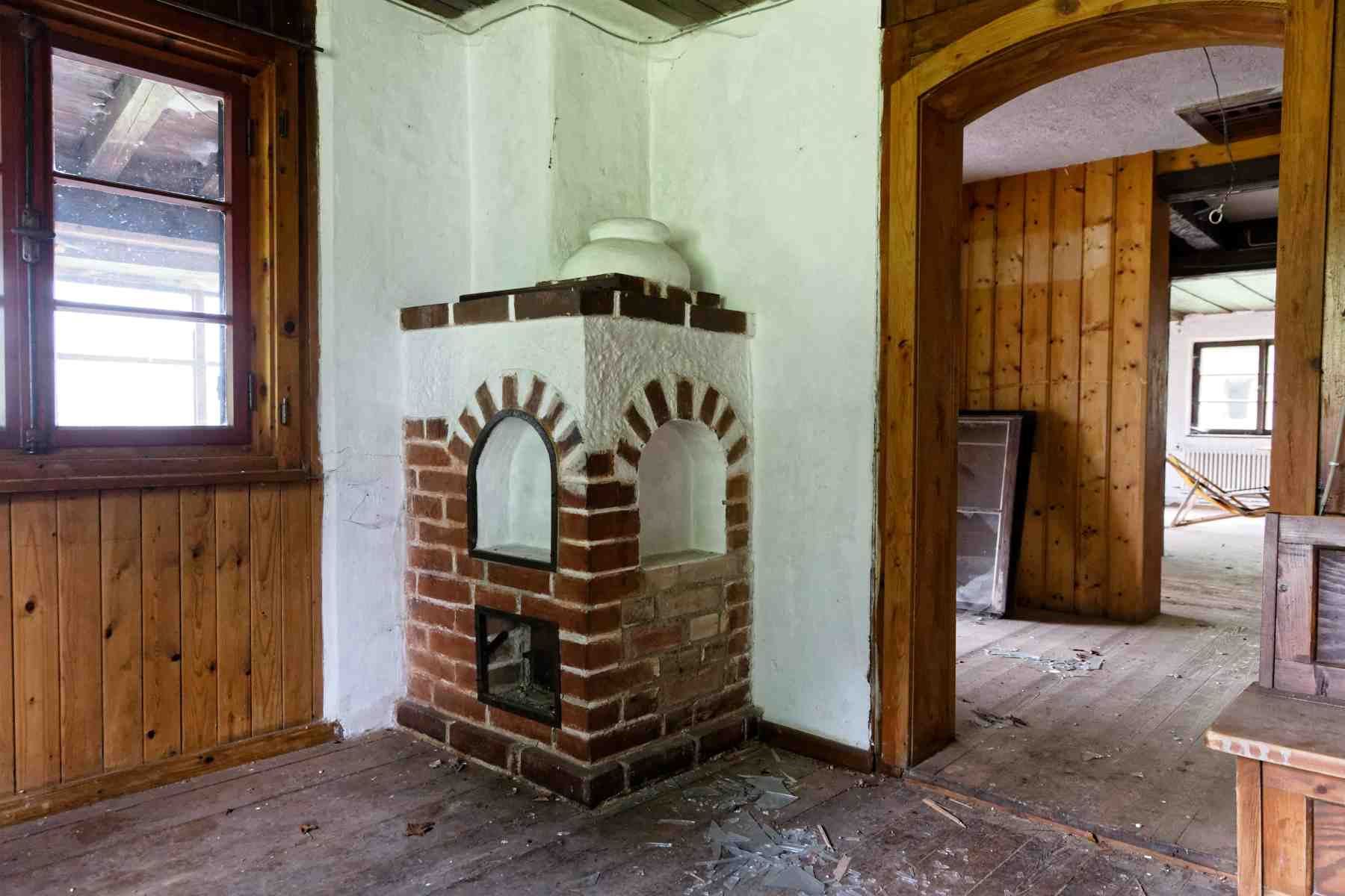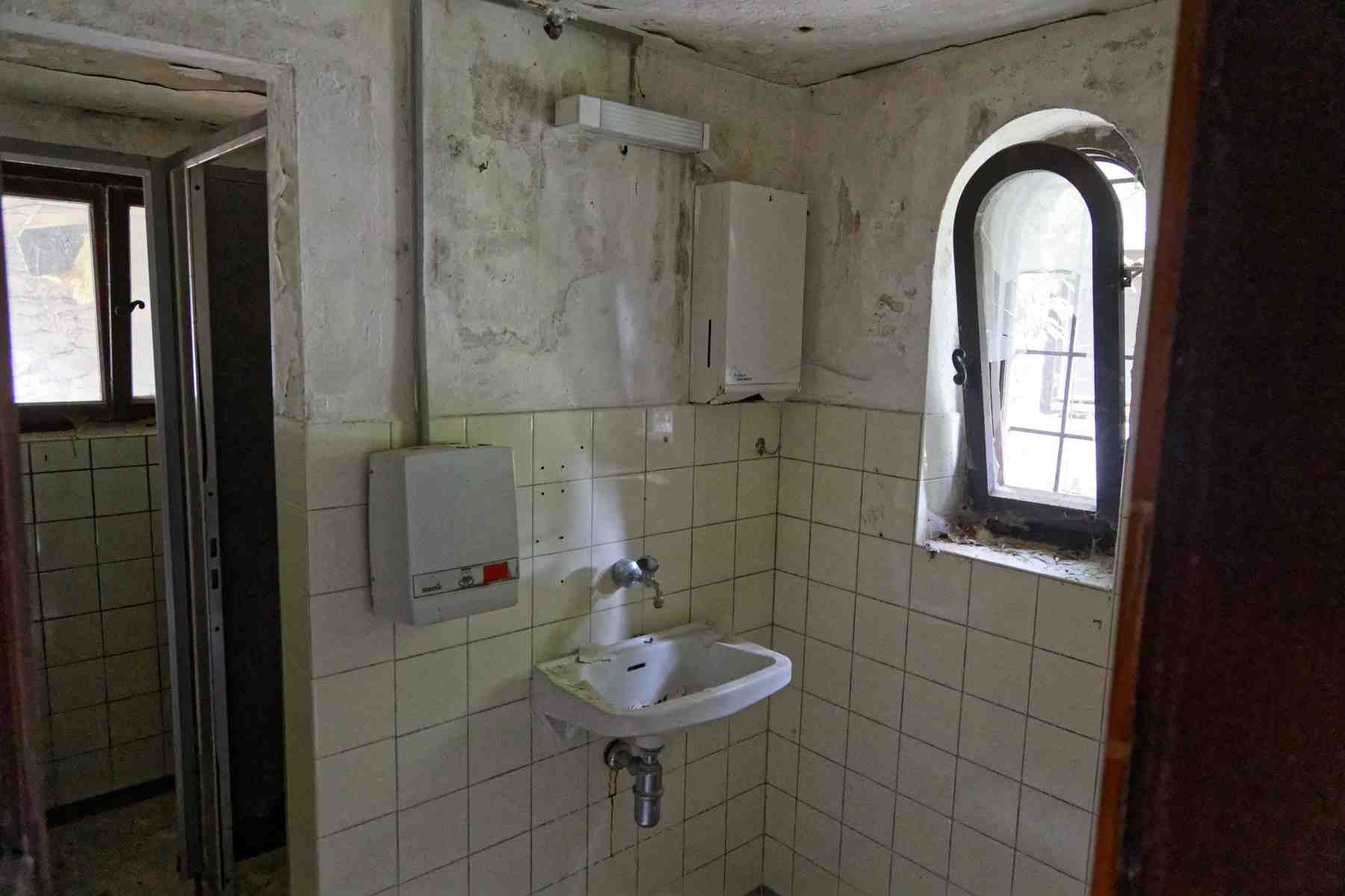 Auch wenn ich anhand von leeren Pizzakartons feststellen konnte das sich hier hin und wieder anscheinend Jugendliche aufhalten, hat hier noch kein Vandalismus Einkehr gehalten. Es gibt noch erhaltene Kachelöfen, Waschbecken sind noch nicht demoliert gewesen, lediglich einige Fensterscheiben waren zu Bruch gegangen.