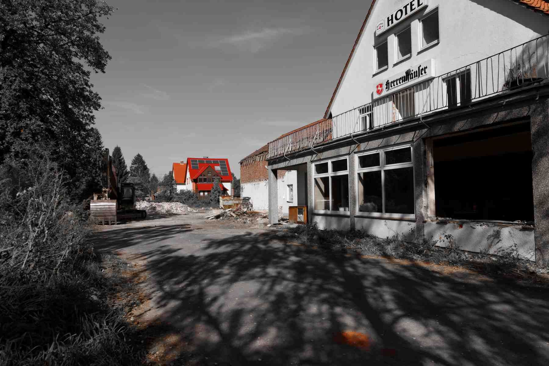 Allerdings ist das Schicksal nun besiegelt: Der Abbruchbagger steht bereit und die Abbrucharbeiten haben bereits begonnen. Nur wenige Tage nachdem diese Aufnahmen entstanden sind, erinnert nichts mehr an das Hotel. Das gesamte Gelände ist ebenerdig für die Nachnutzung vorbereitet. Durch einen Investor wurden an dieser Stelle Reihenhäuser errichtet und nichts erinnert mehr an das Hotel.