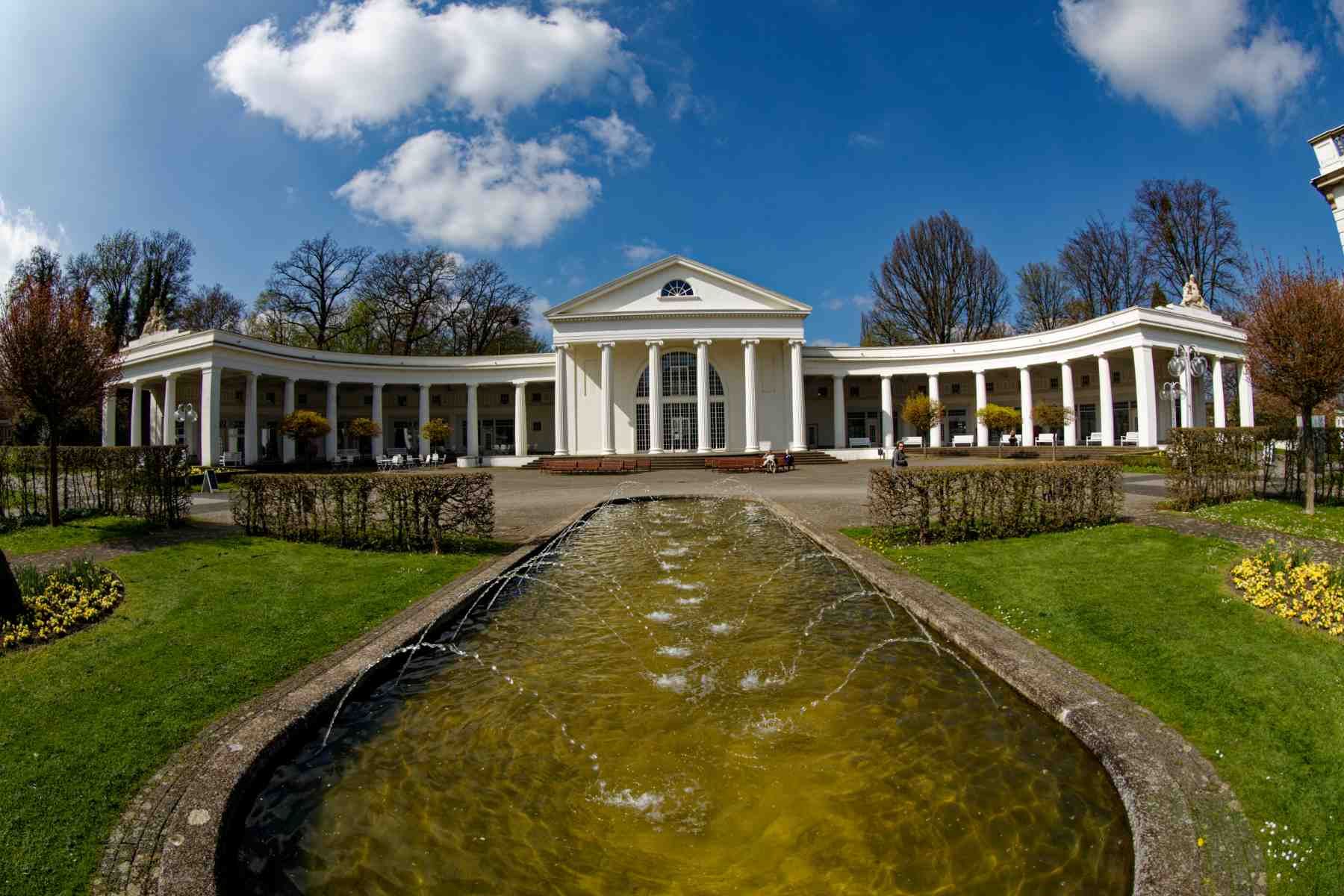 Dazu gehören zum Beispiel das Badehaus I, welches im klassizistischen Baustil 1852 bis 1857 erbaut wurde. 1885 folge das Badehaus II im Stil der Neorenaissance. Das Neobarocke Kurhaus wurde im Zeitraum 1905 bis 1908 errichtet. Verschiedene Kleinbauten und Tempel runden das architektonische Gesamtbild ab.