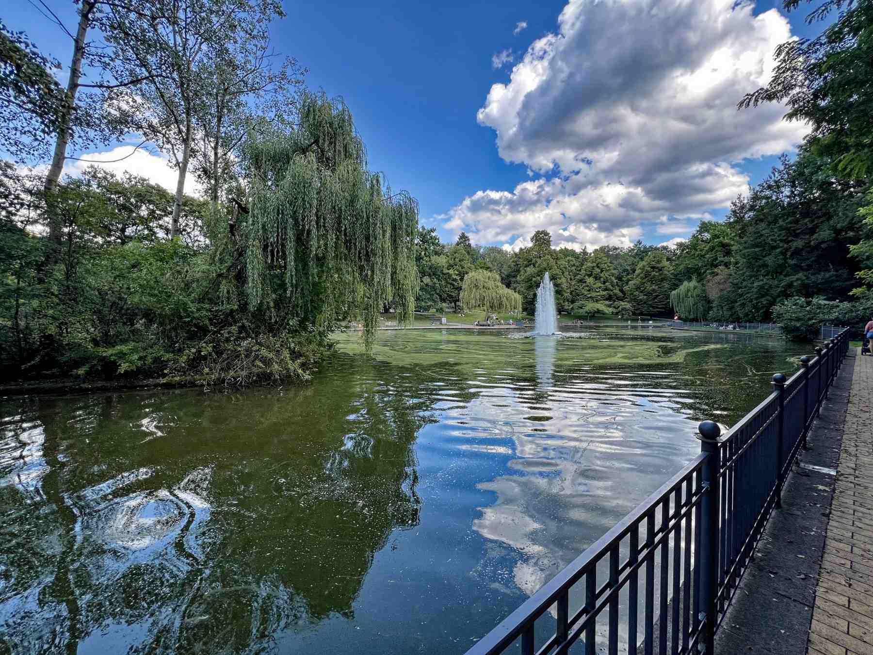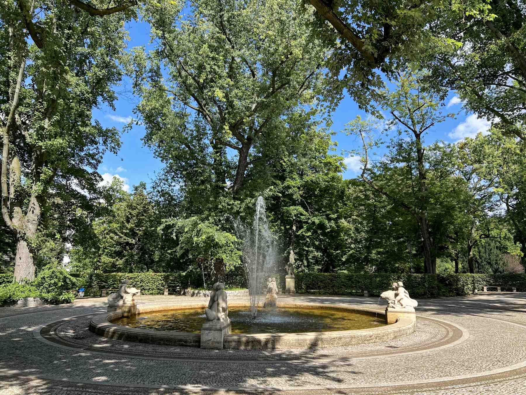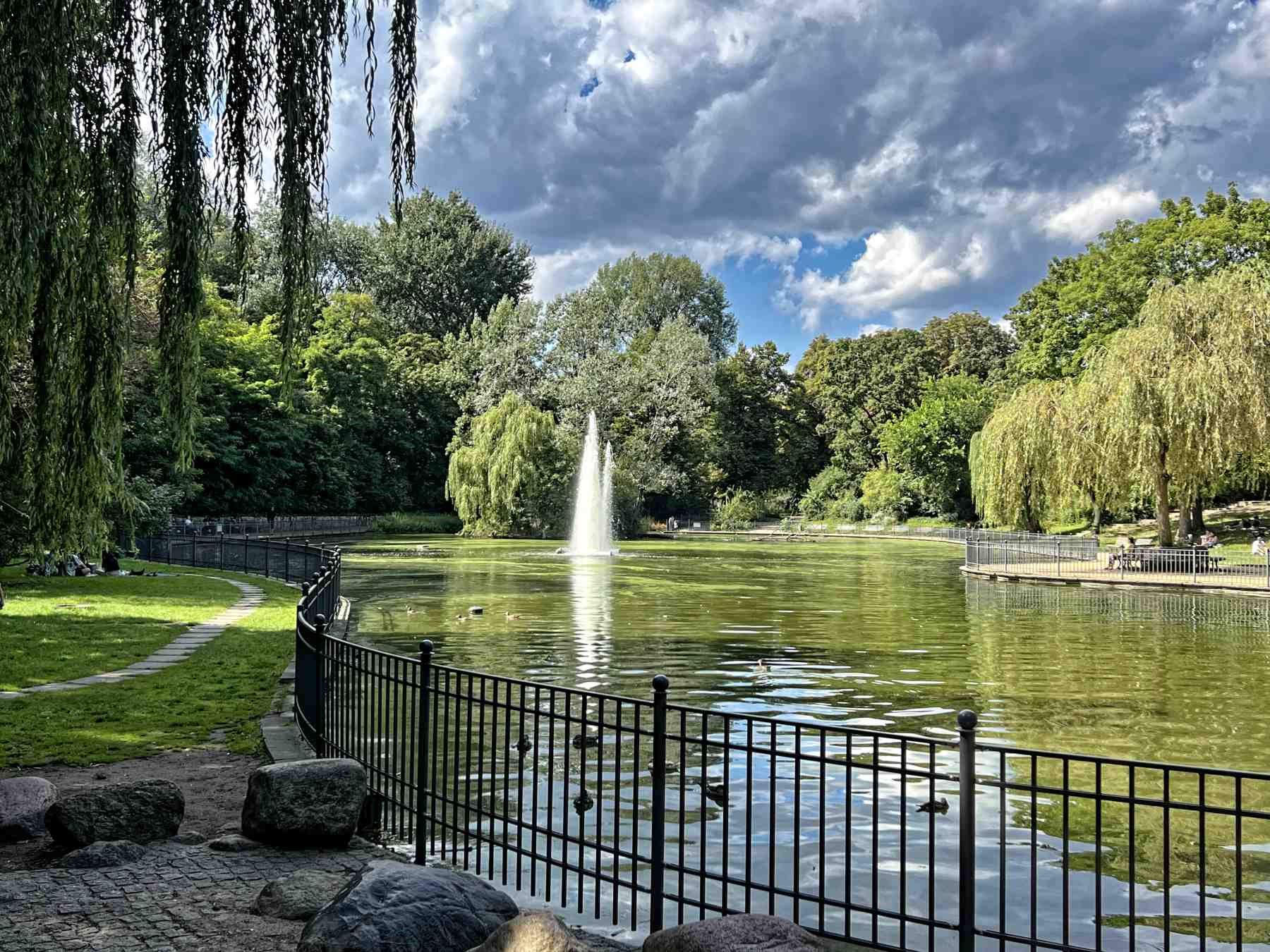 Der Volkspark Friedrichshain ist Berlins ältester Park. Es gibt unzählige Sport- und Spielplätze. Die bekannteste Sehenswürdigkeit des Parks ist der Märchenbrunnen. Direkt am Schwanenteich mit seiner Fontaine befindet sich eine Gaststätte sowie ein Staudengarten mit der plätschernden "Wasserglocke".