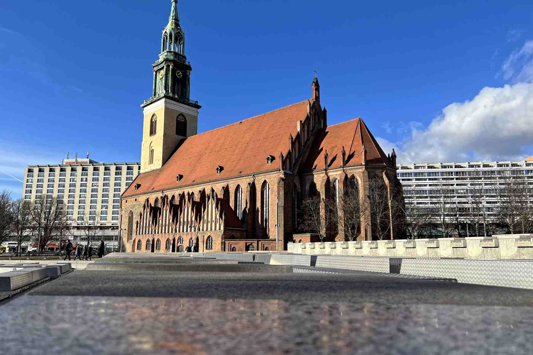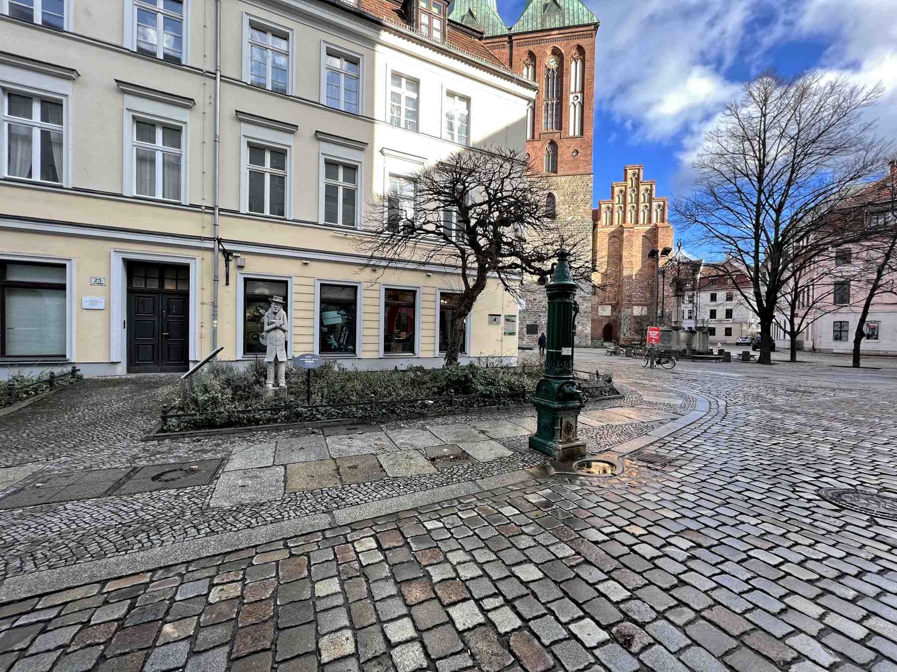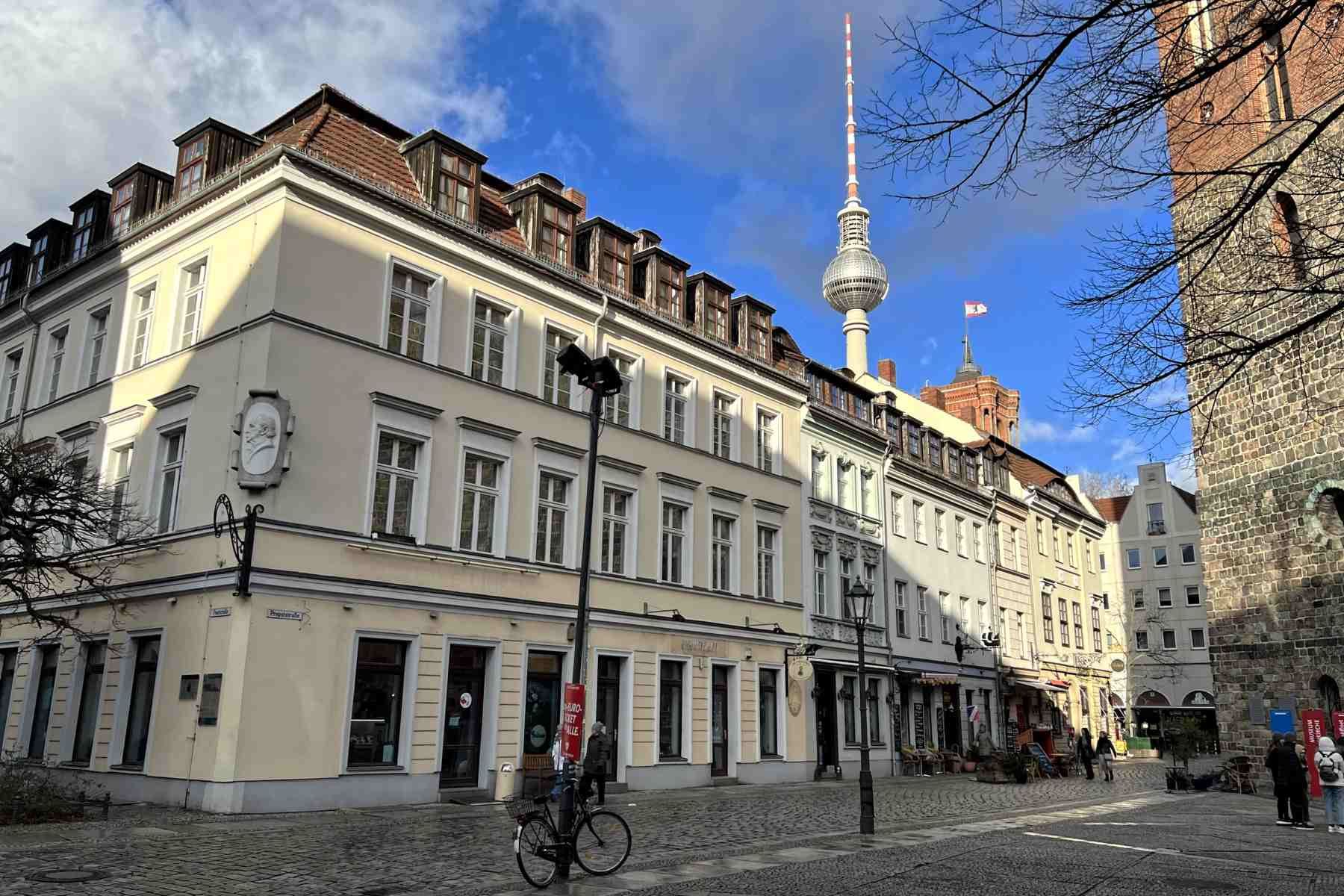 Vom Roten Rathaus aus überqueren wir die Spandauer Straße und sind im historischen Nikolaiviertel mit der namensgleichen Kirche.