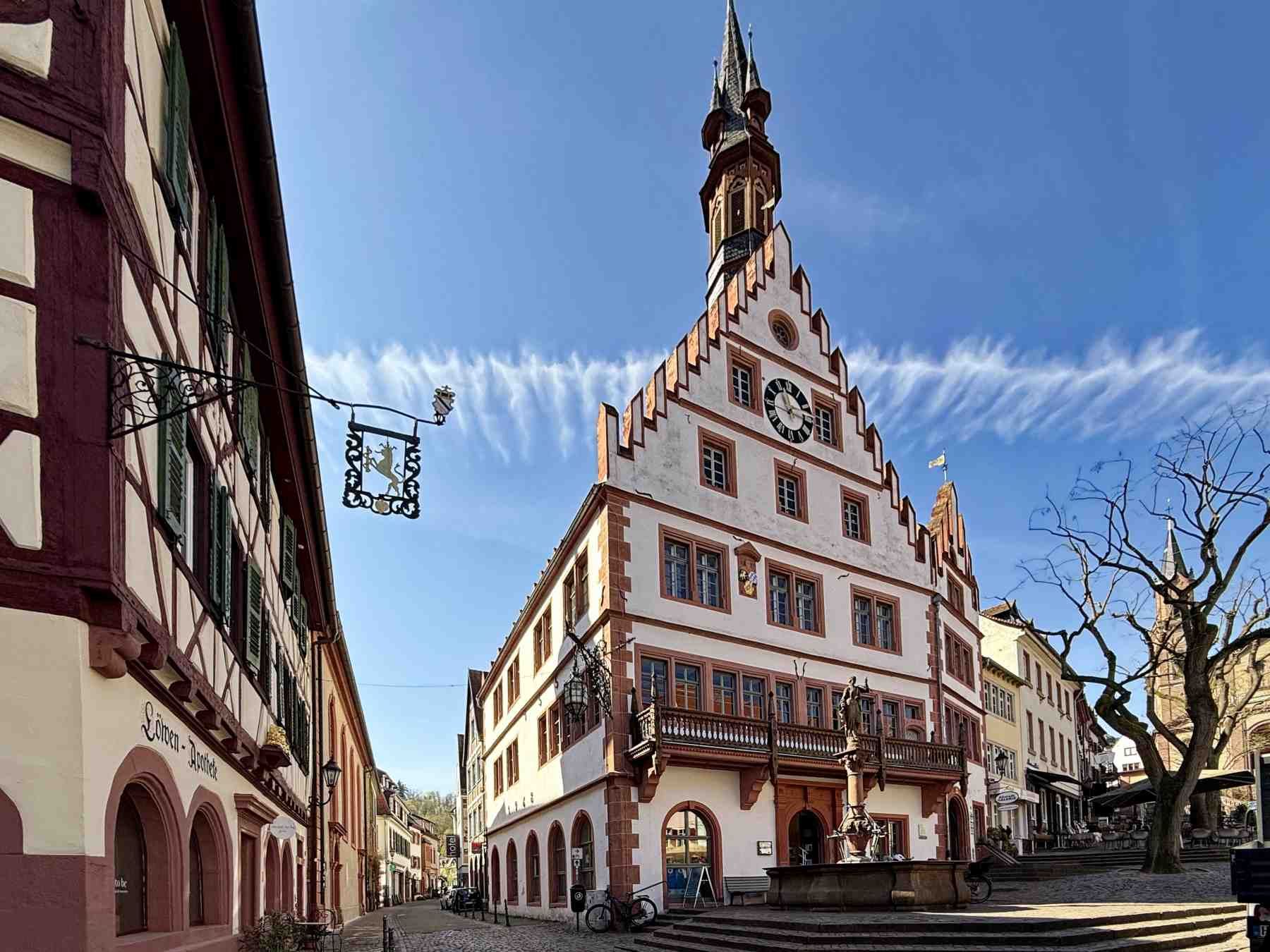Nach dem Verlassen der Schlossanlagen begeben wir uns zum Herzstück der Altstadt, dem historischen Marktplatz. Dieser ist umrahmt vom Alten Rathaus von 1557, der Löwenapotheke aus dem Beginn des 17. Jahrhunderts und dem Marktbrunnen.