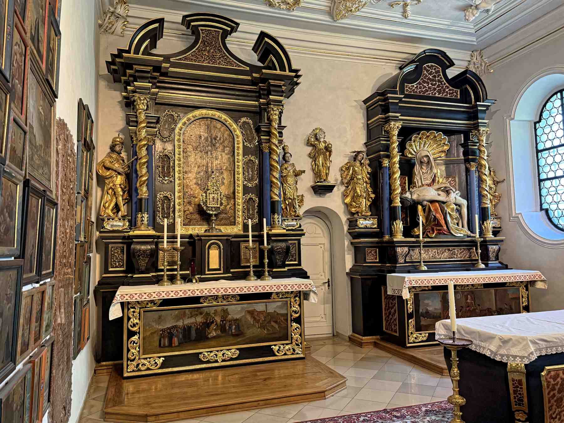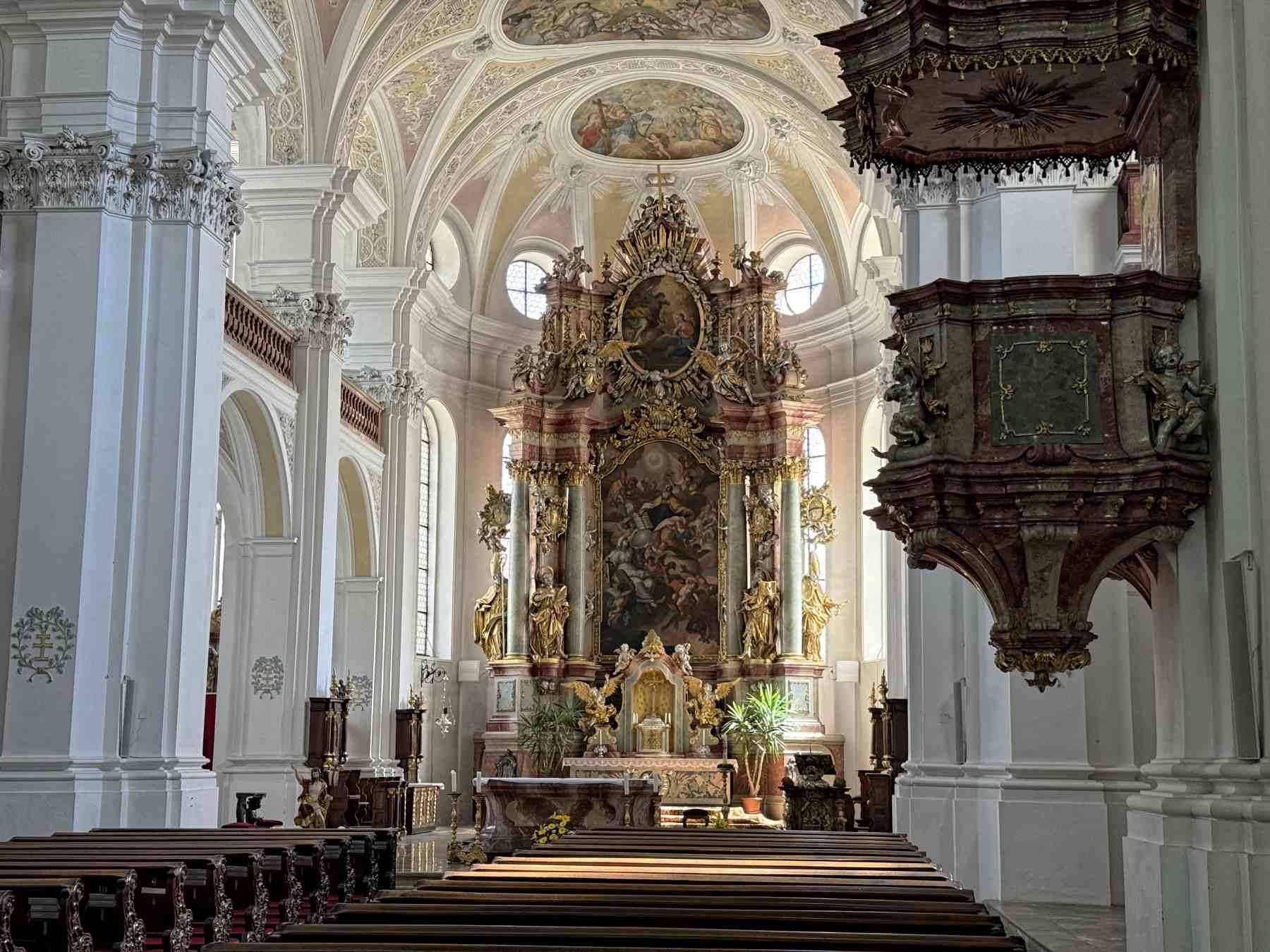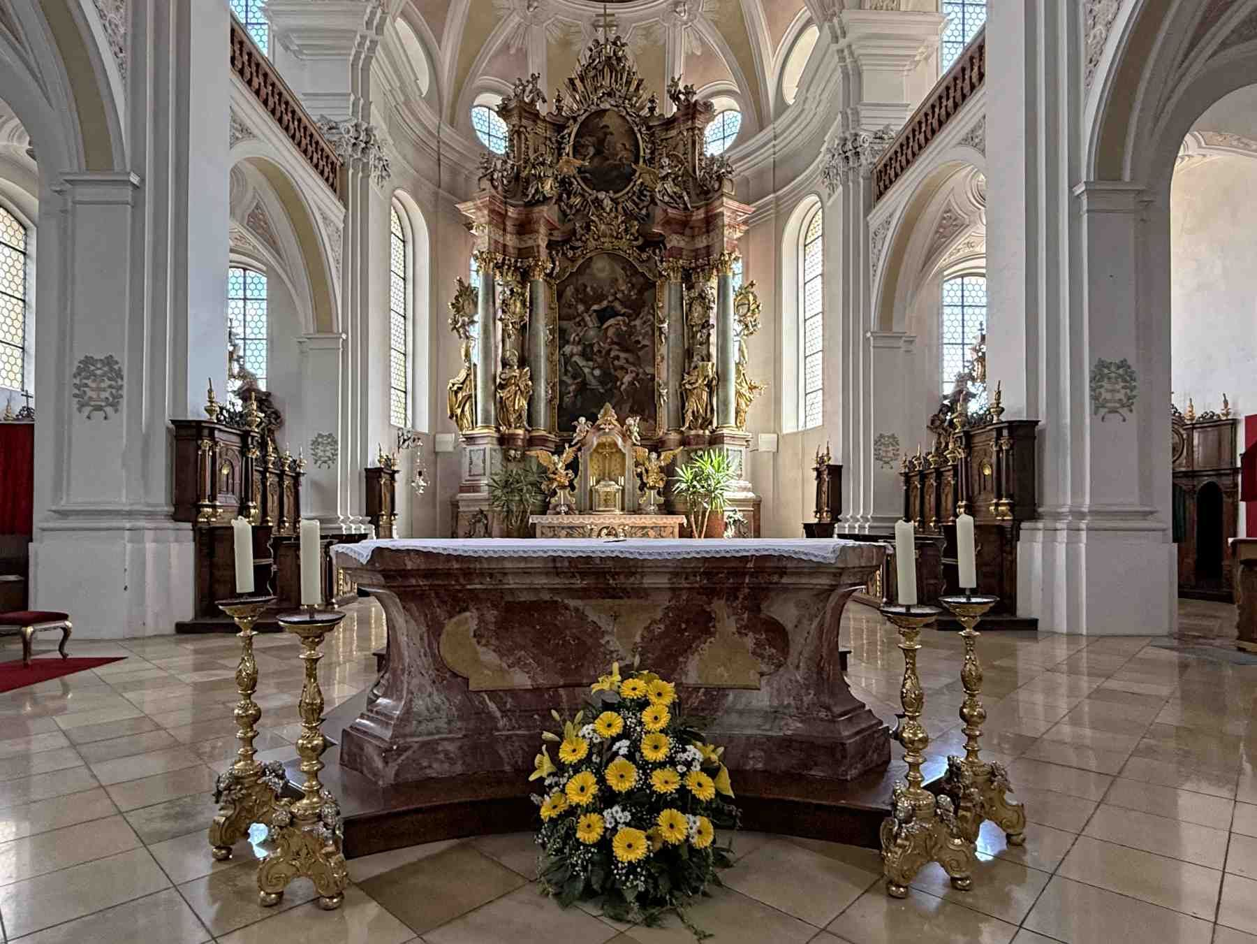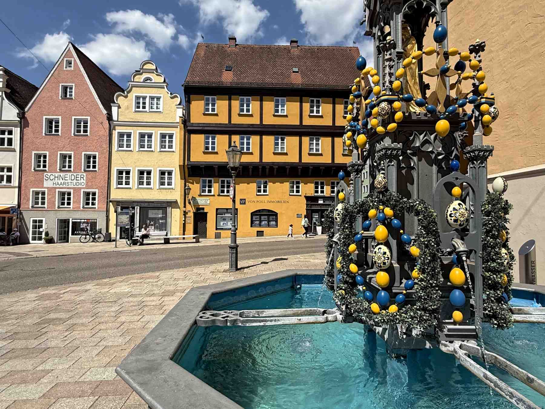 Zu den besonders hervorzuhebenden Gebäuden der Reichsstadt zählt unter denen die prunkvolle Barock- und Wallfahrtskirche des ehemaligen Klosters Heilig Kreuz, die im Stil des Wessobrunner Barocks erbaut worden ist.