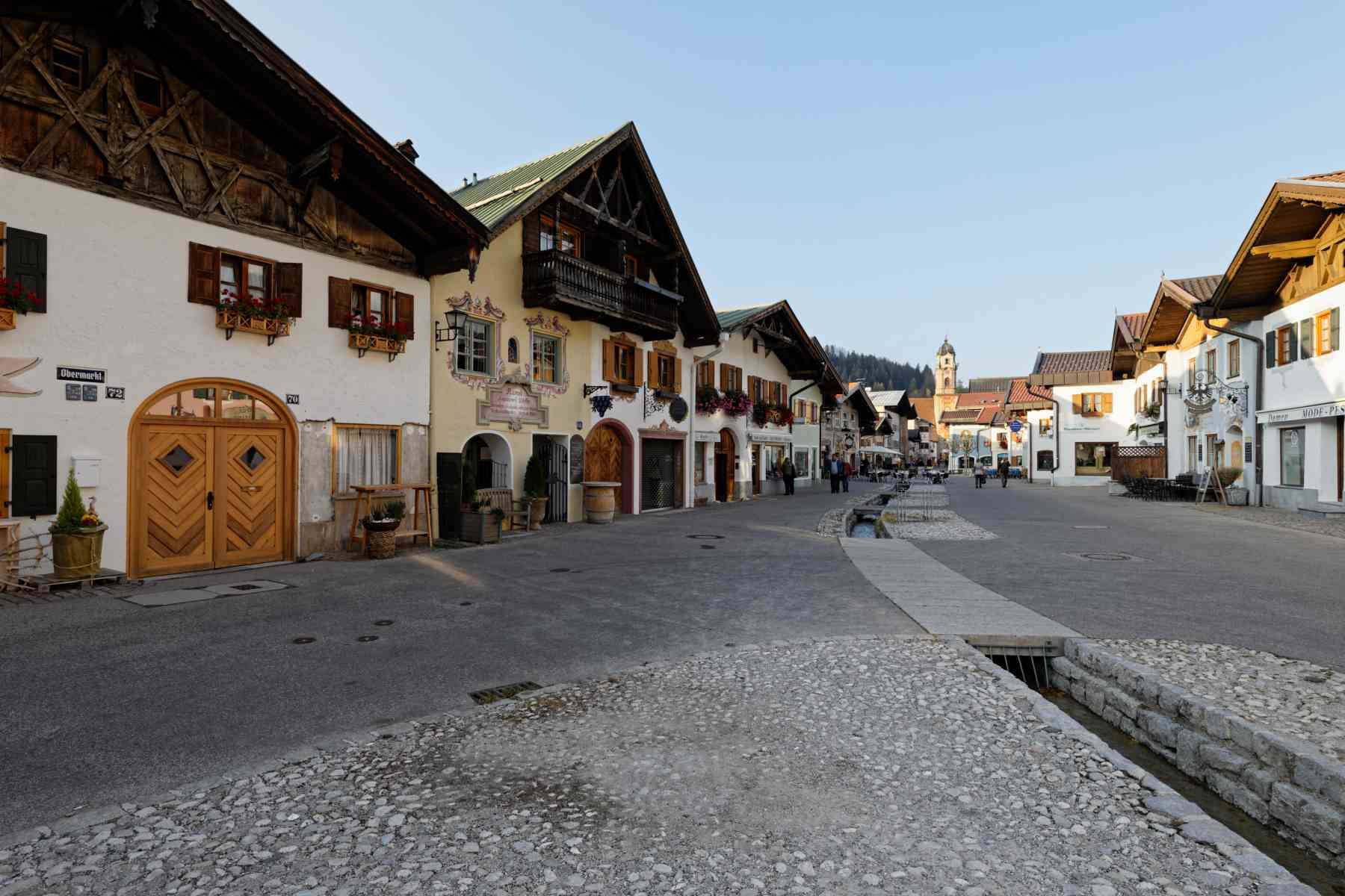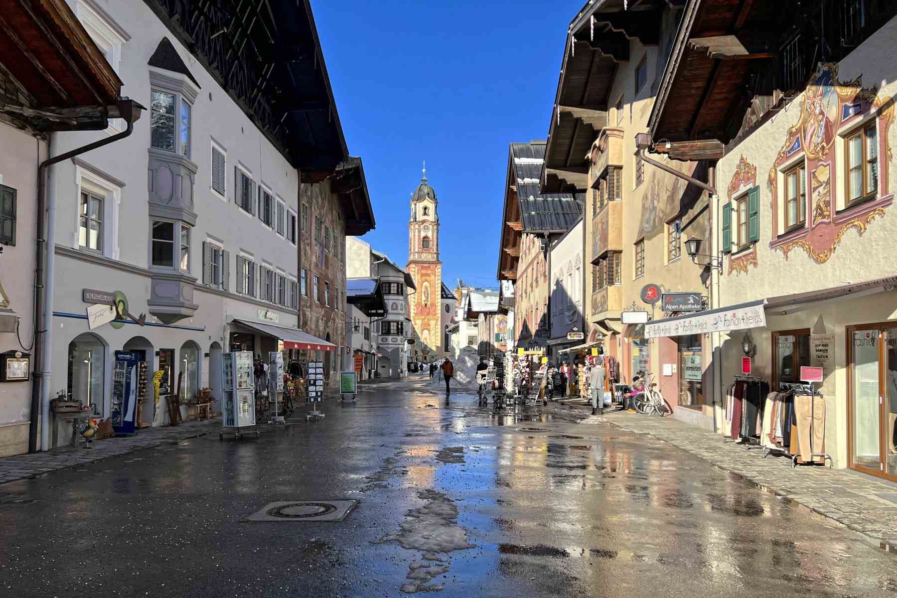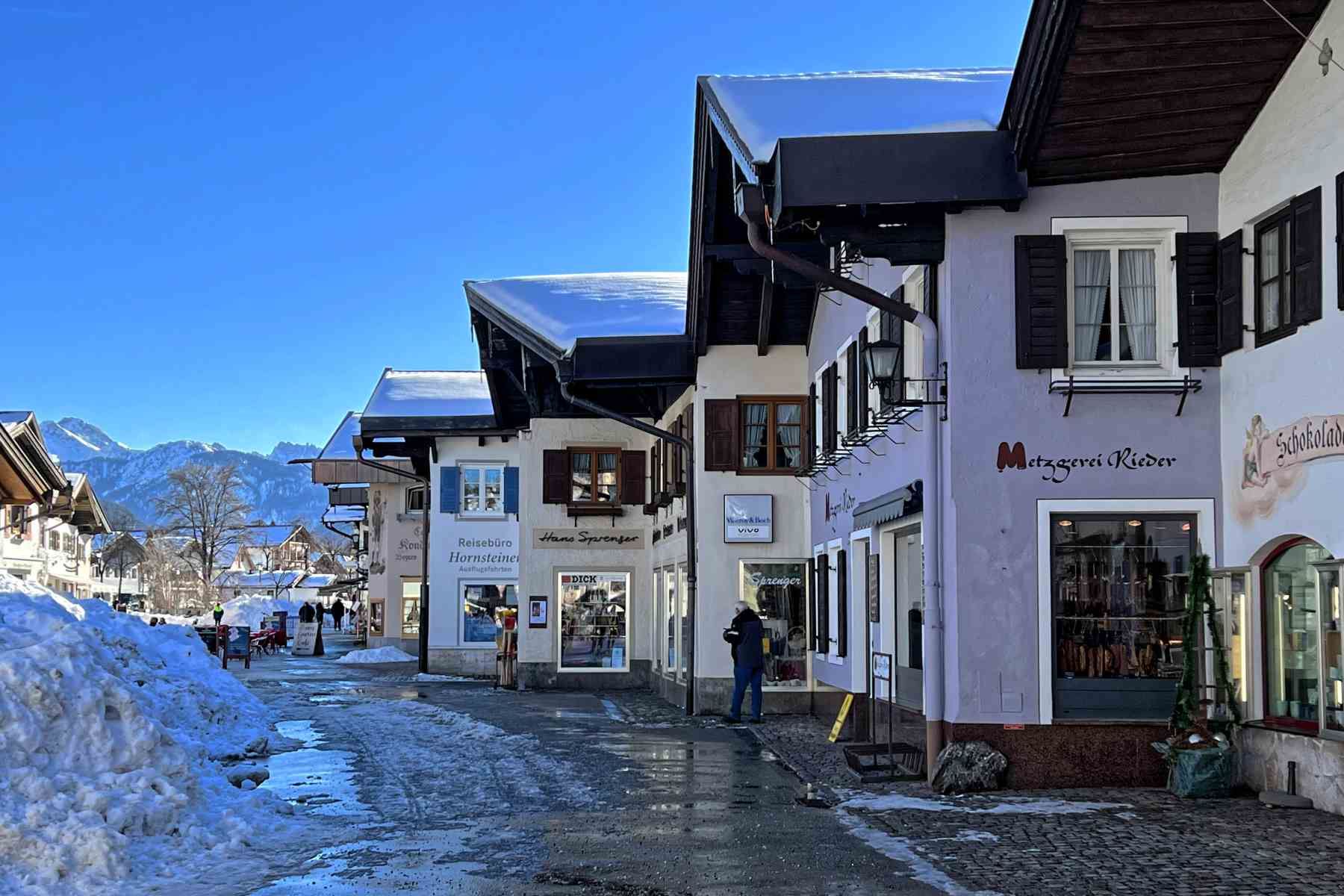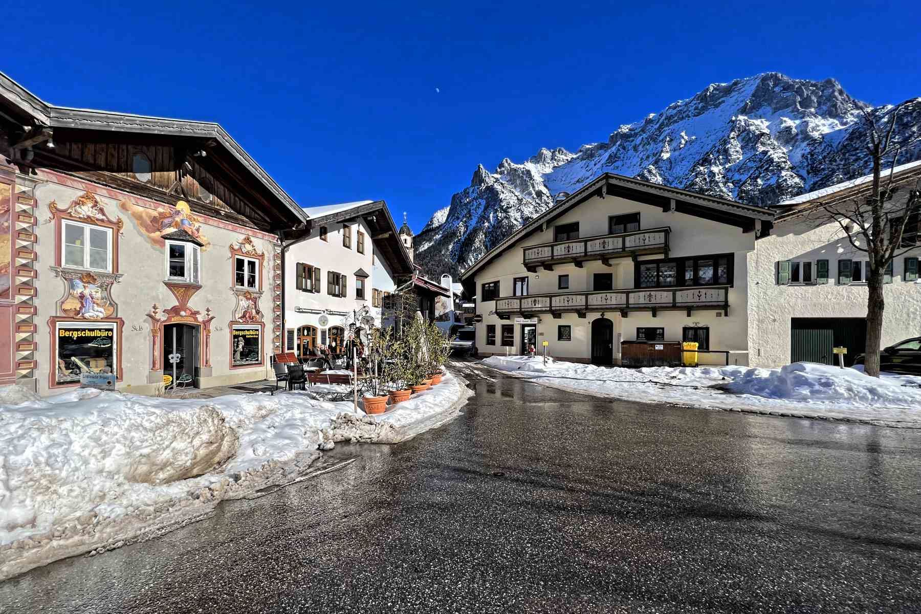 Nach dem Schnee kam die Sonne: Impressionen von den motivträchtigen Plätzen und Straßen in Mittenwald: Obermarkt, Ballenhausgasse und Im Gries.