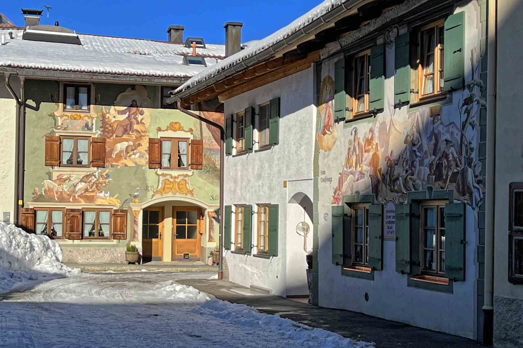 Nicht versäumen dürfen Sie eine Art Bilderbuchspaziergang durch Mittenwald: Aufwendige Lüftlmalereien zieren viele Hausfassaden - insbesondere im historischen Ortsteil Gries. Die bemalten Hausfassaden zeigen Bilder unter anderem aus der Ortsgeschichte, der Flößerei und dem Bozner Markt.