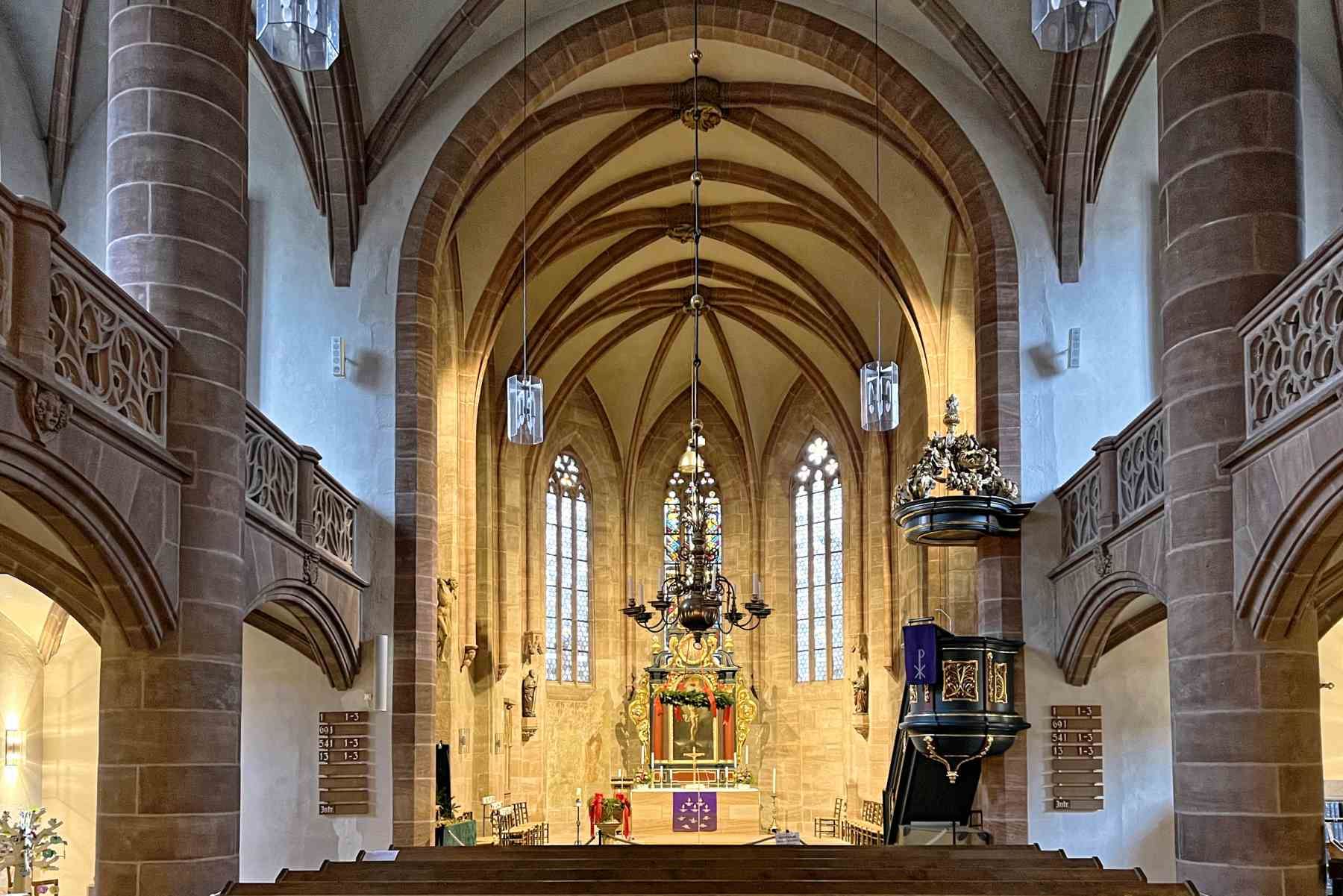 Eine besondere Komposition ist am Kirchenberg zu sehen: Die gotische Kirche Sankt Nikolaus und Sankt Ulrich bietet im Zusammenspiel mit dem Imhoffbau und dem Hallerschloss eine beeindruckende Ansicht.