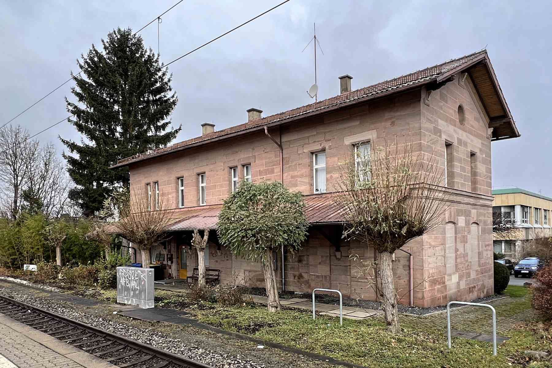 Vom Hauptbahnhof Nürnberg aus wird der Stadtteil Mögeldorf mit der S-Bahn Linie 1 (Richtung Hartmannshof) oder mit der Straßenbahn Linie 5 (Richtung Tiergarten) erreicht.