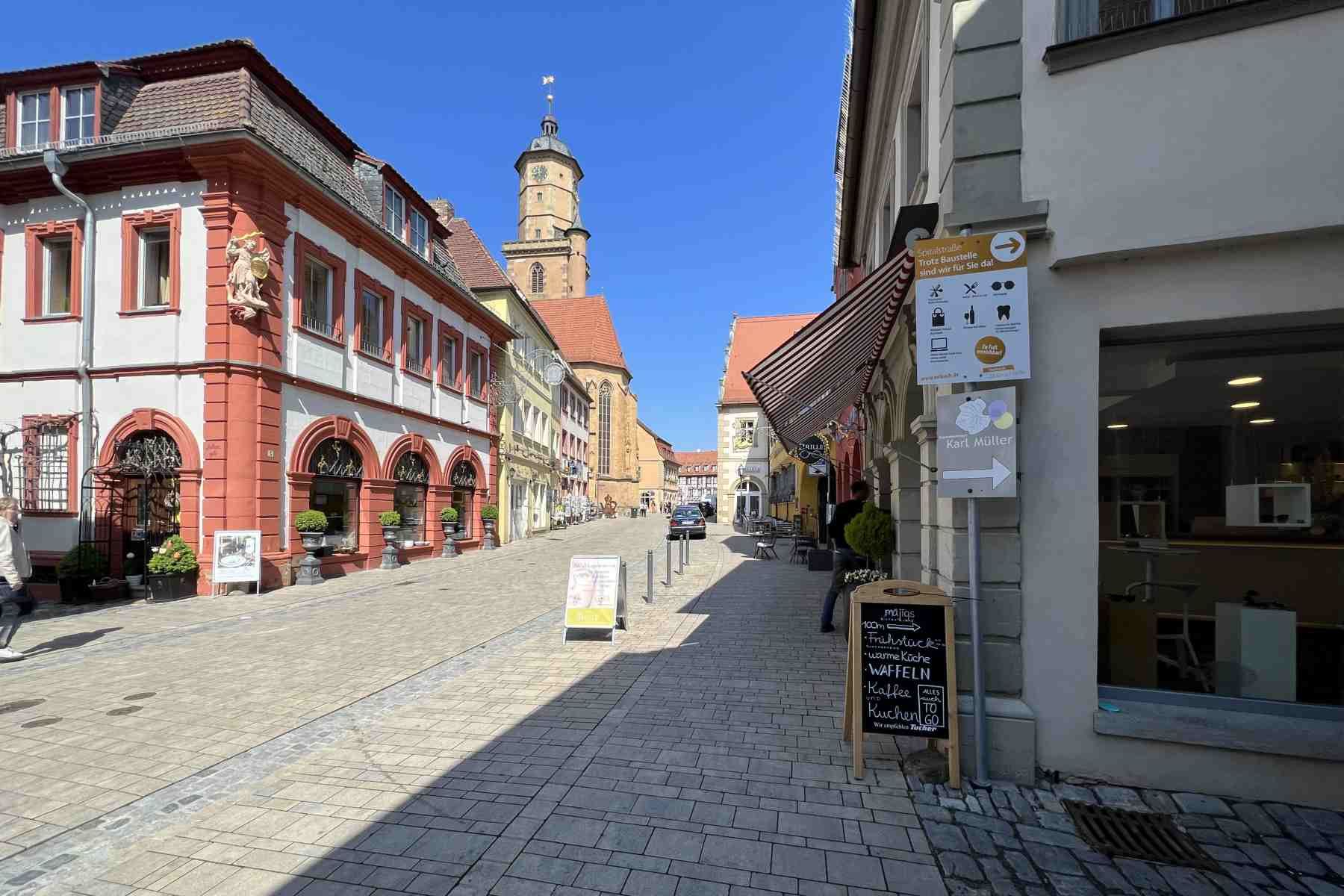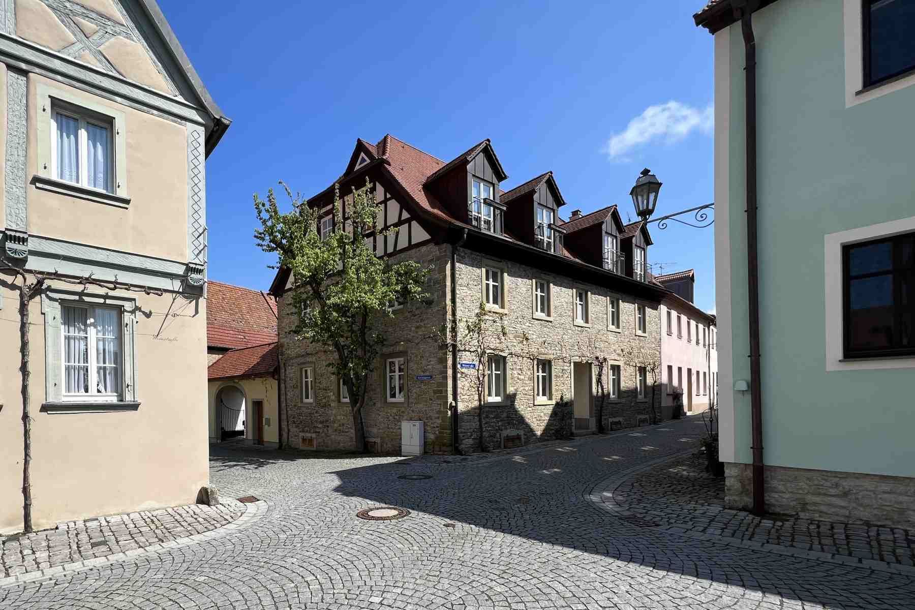Ein typischer fränkischer Weinbauort mit einem repräsentativen Rathaus und Marktplatz.