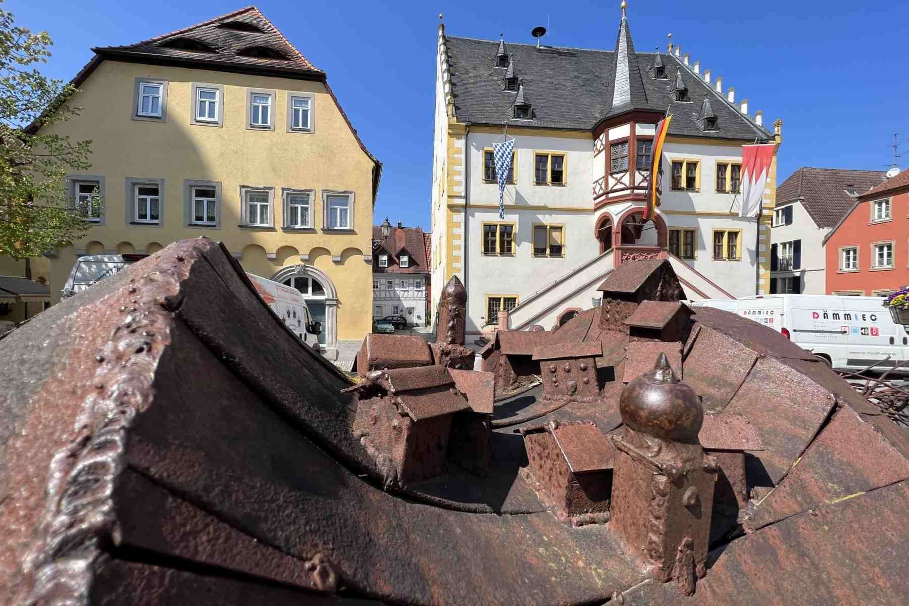 Wie üblich in den historischen Altstadtkernen bildet der Marktplatz mit seinem Marktbrunnes das Herzstück der Stadt. Gleich ins Auge fällt das Renaissance-Rathaus. Erbaut 1544 mit einer Außentreppe und einem Fachwerk-Erker.