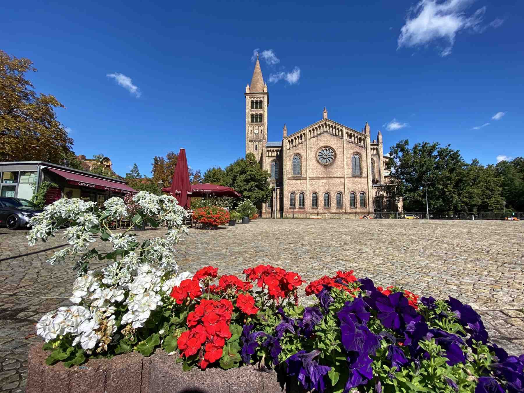Bergabwärts zur Orangerie, vorbei an der Historischen Mühler zum Schloss Sanssouci. Über den Weinberg gehen wir wieder zur Hauptallee Richtung Friedenskirche. Wir verlassen den Park in Richtung Brandenburger Tor, anschließend über die Fußgängerzone zum Hauptbahnhof.