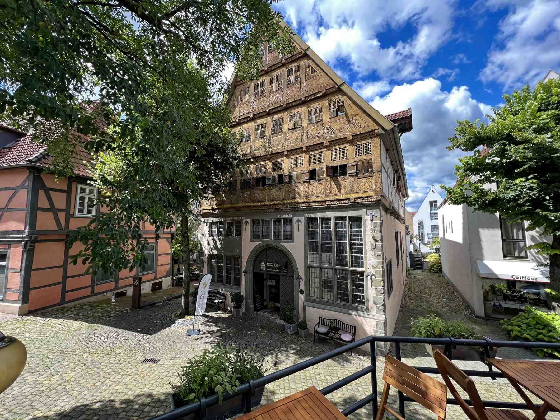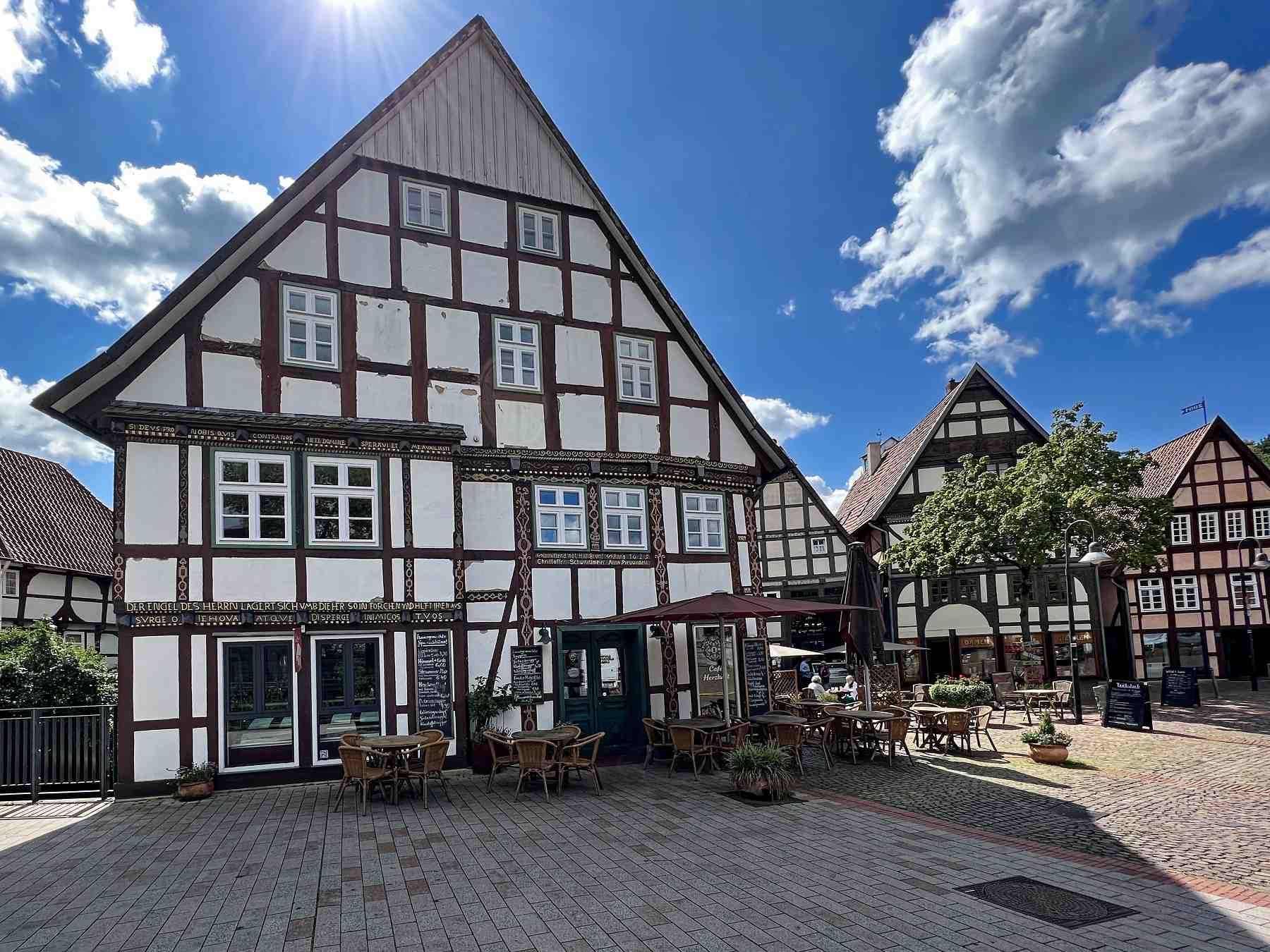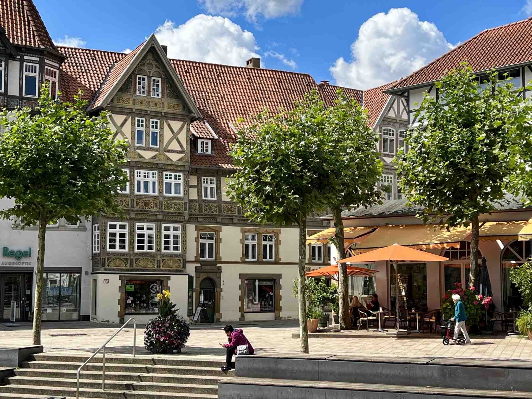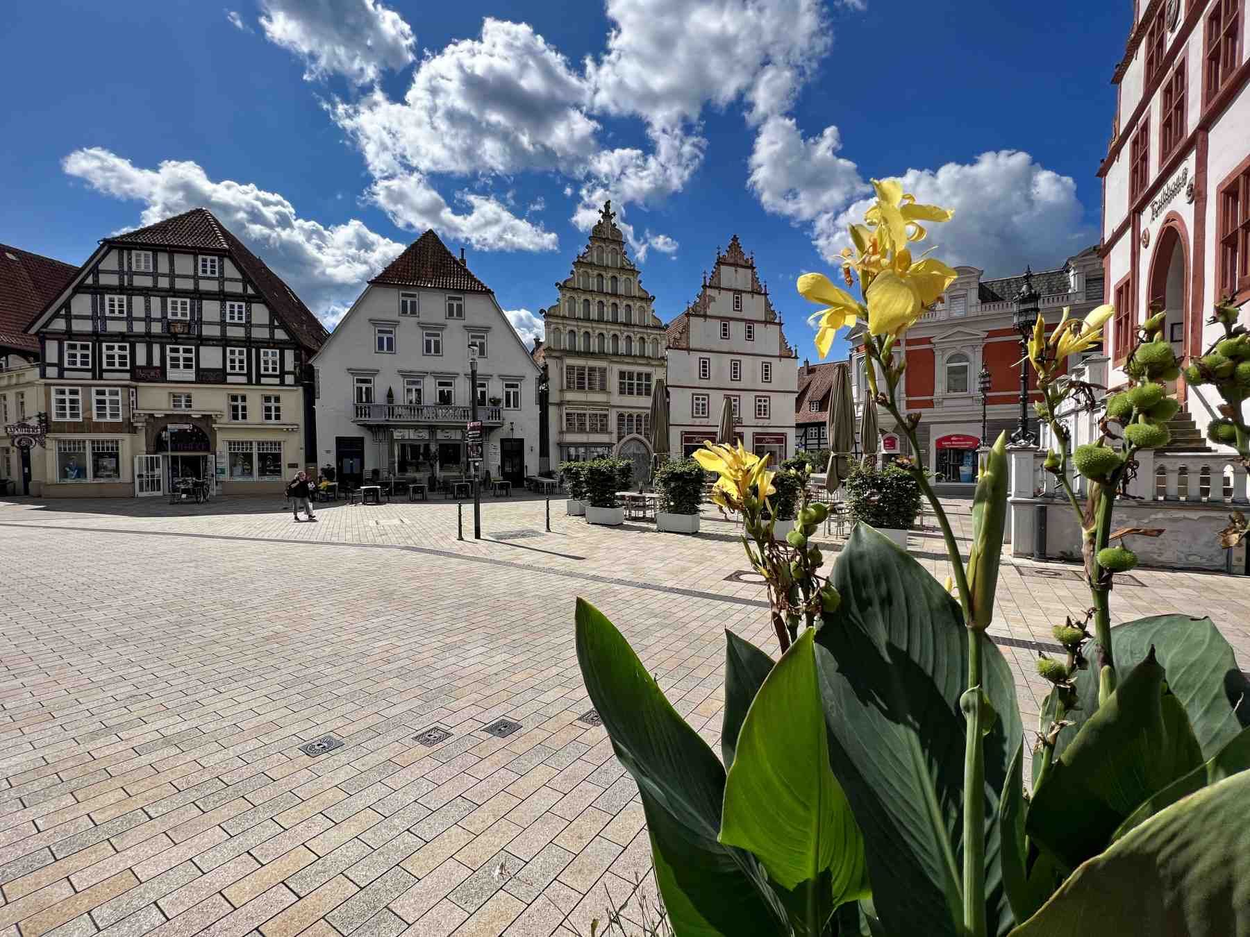 Bereits im Mittelalter war die Stadt durch die örtliche Salzgewinnung reich geworden, dieses spiegelt sich in den sehr aufwendig verzierten Fachwerkhäusern wieder. Hierbei handelt es sich zu meinst um giebelständiger Fachwerkbauten aus dem 16. und 17 Jahrhundert. Eines der besonders hervorragend noch erhaltenen Weserrenaissance-Ensembles in Ostwestfalen steht in der Fußgängerzone in der Langen Straße 5 bis 9.