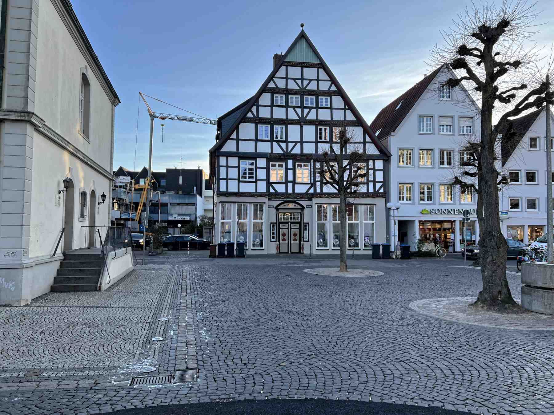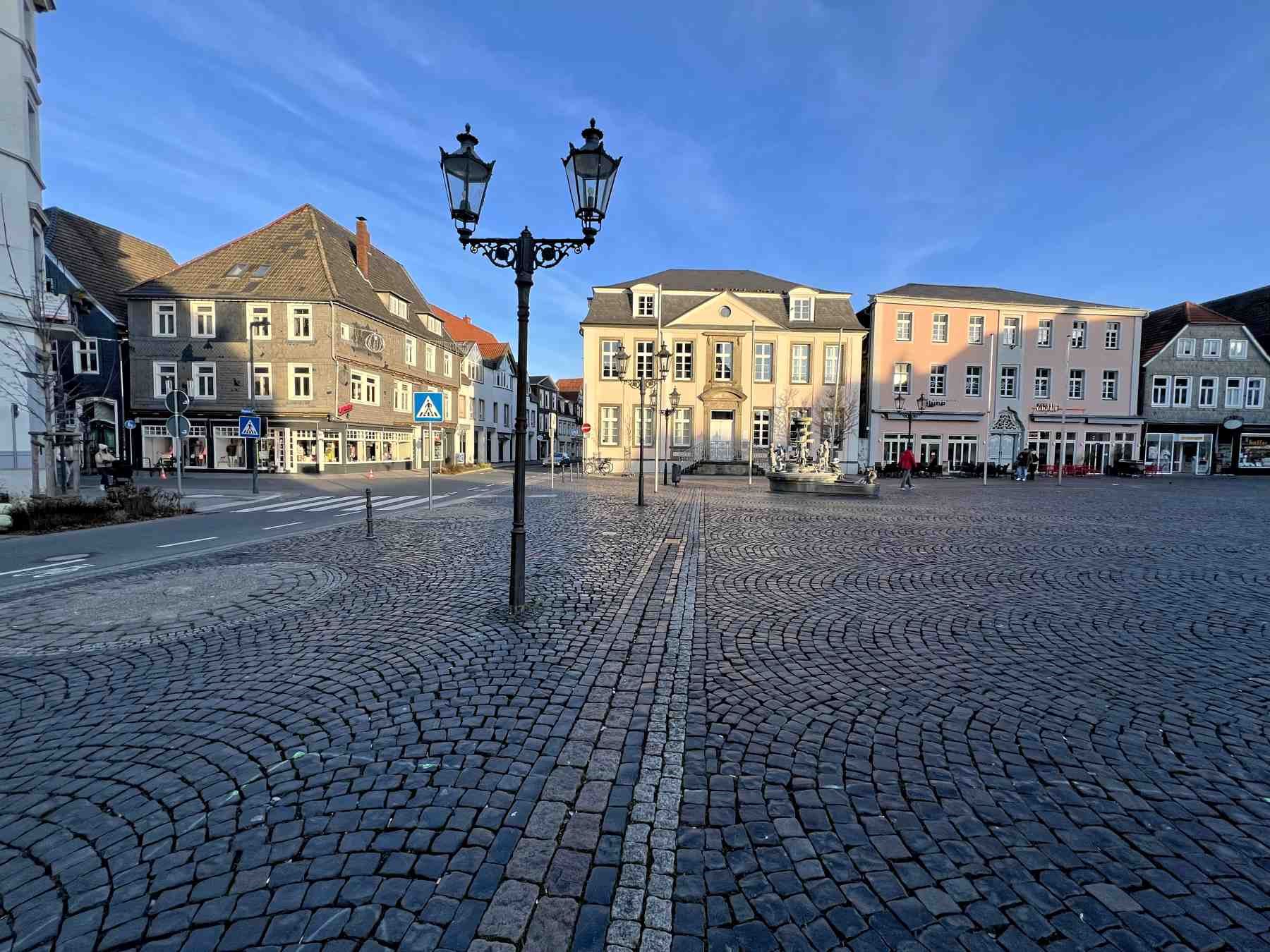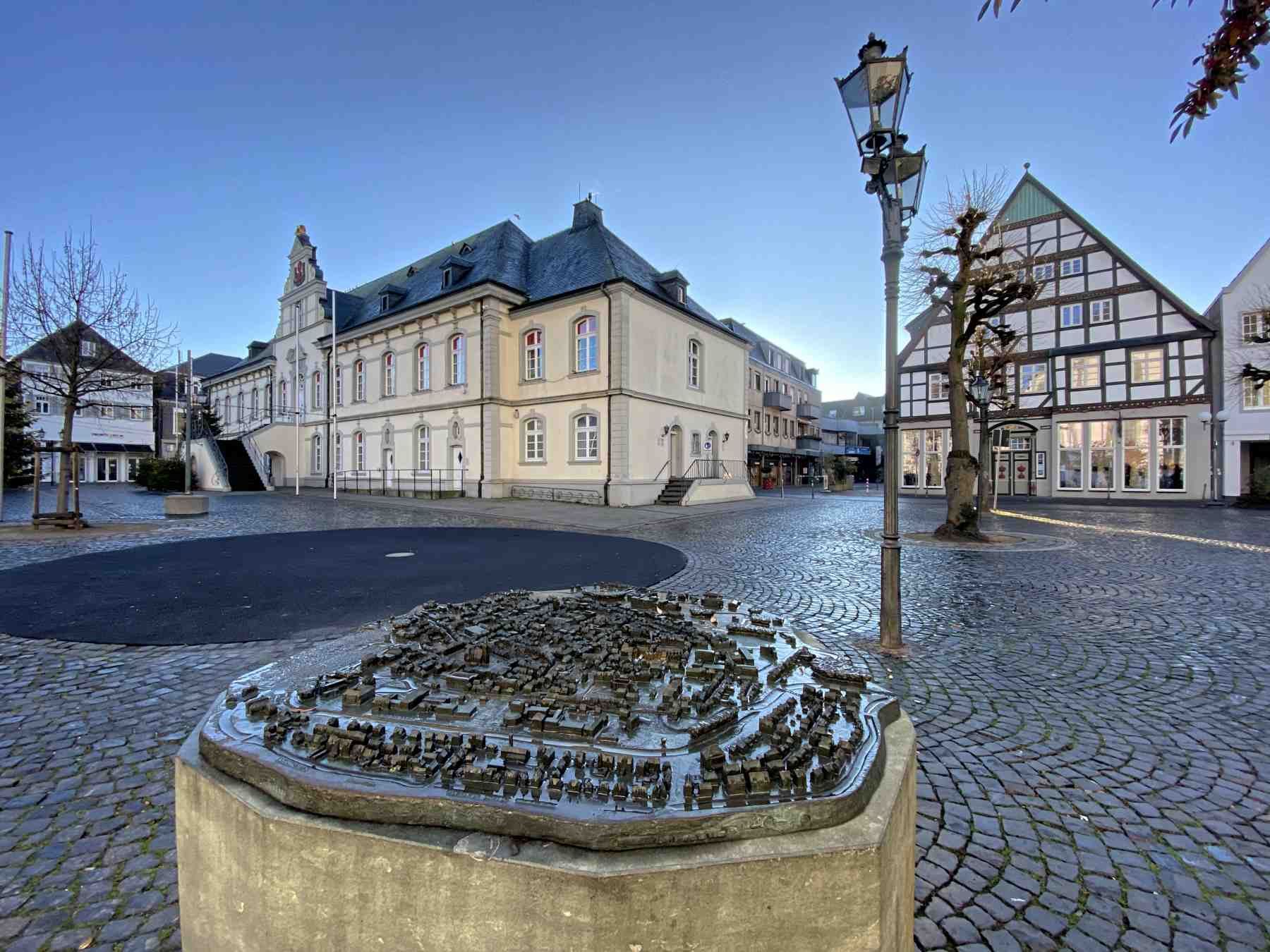 Mittelpunkt der Altstadt ist der Marktplatz mit dem Bürgerbrunnen und der angrenzenden Marienkirche und dem Rathaus.