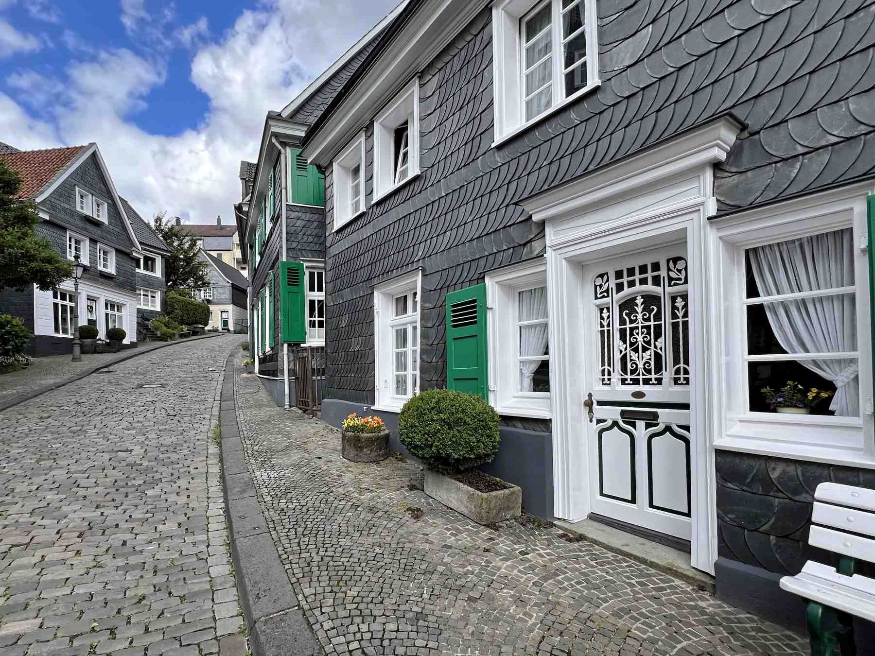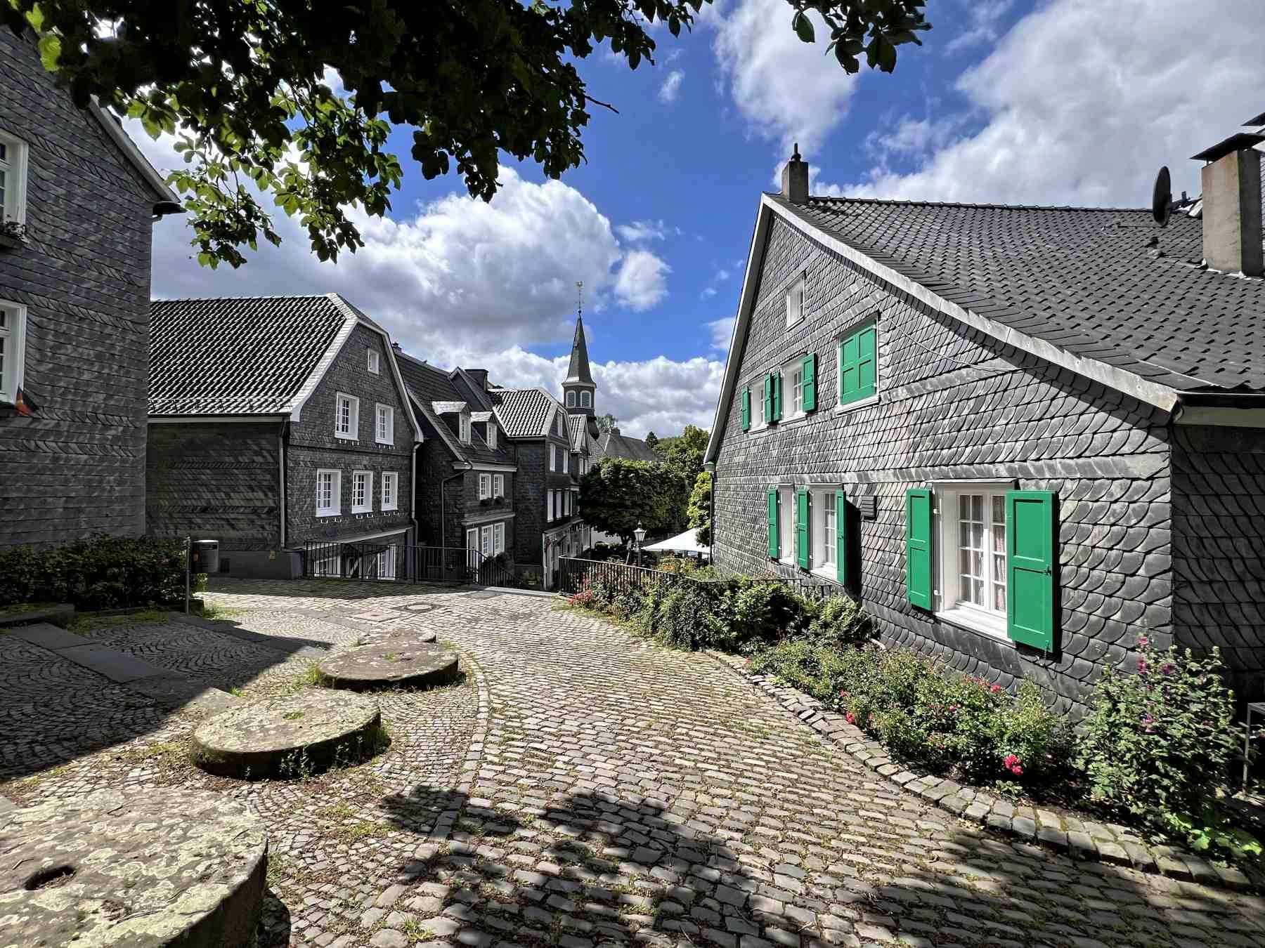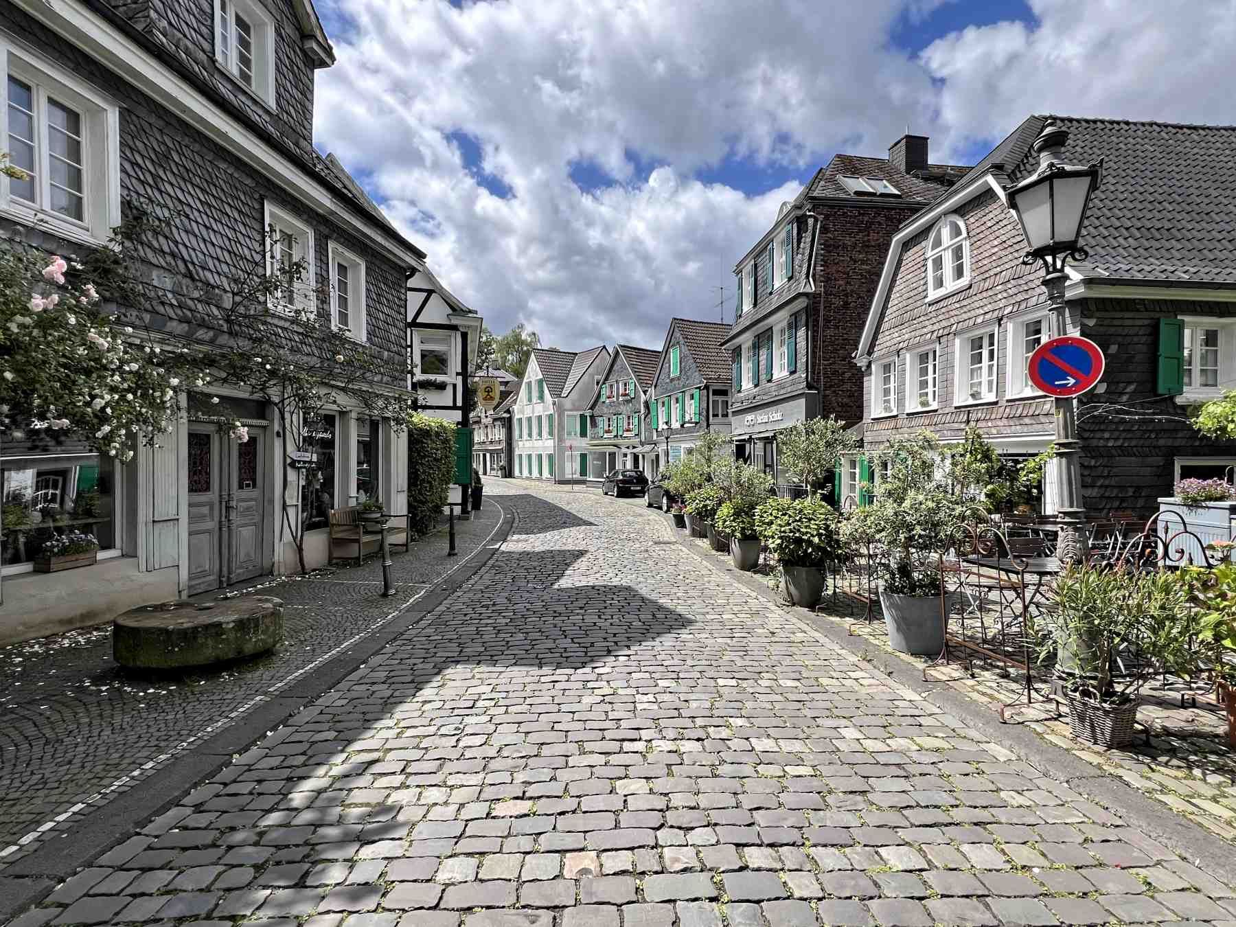 Als wäre die Zeit stehen geblieben - so präsentiert sich der im Norden von Solingen liegende Stadtteil Gräfrath. Der Ortskern mit etwa 120 Baudenkmälern steht als ganzes unter Denkmalschutz.