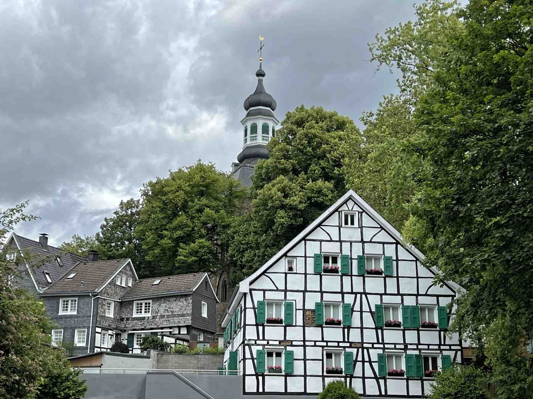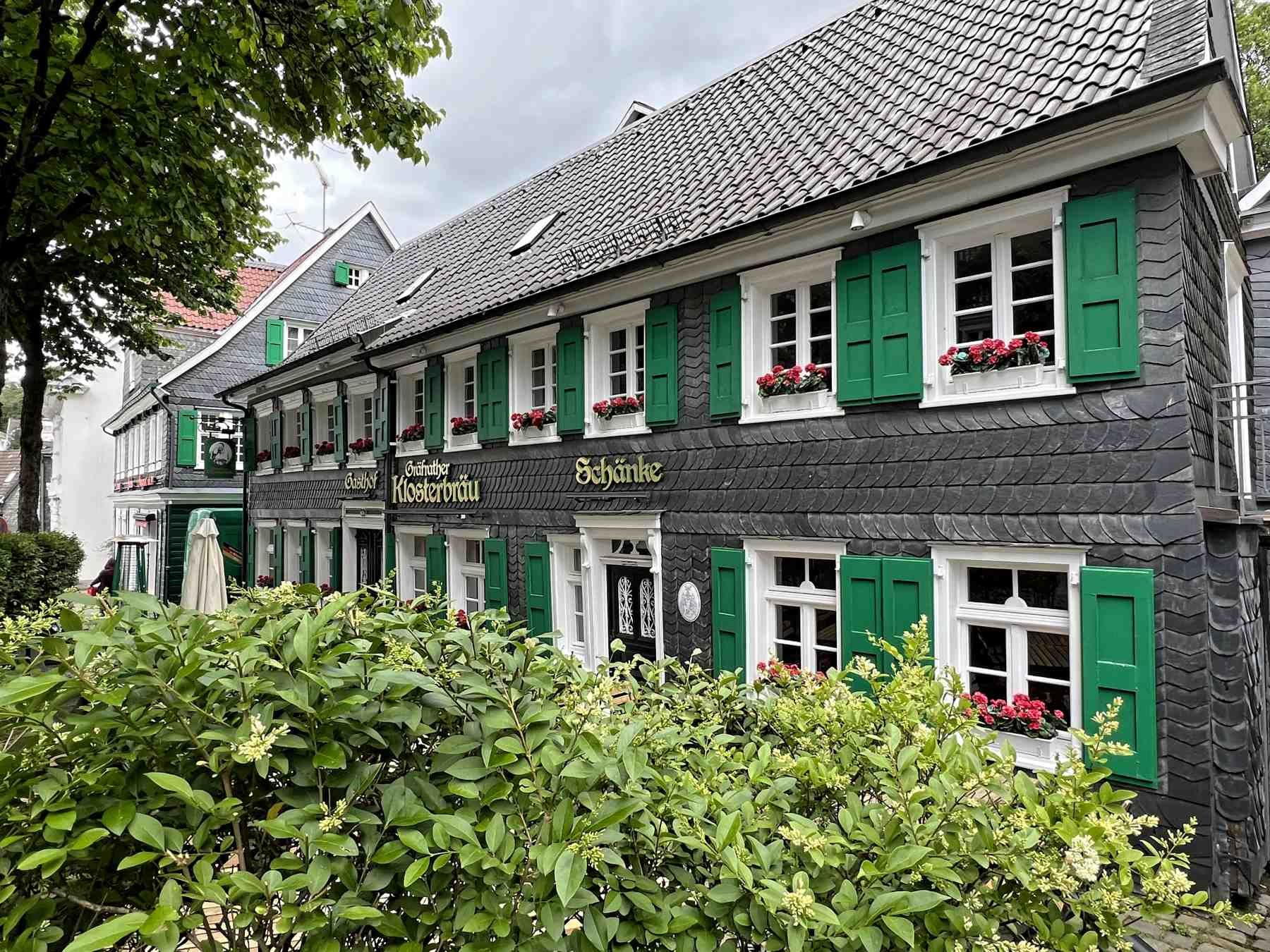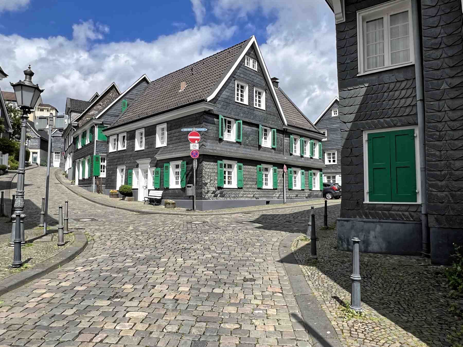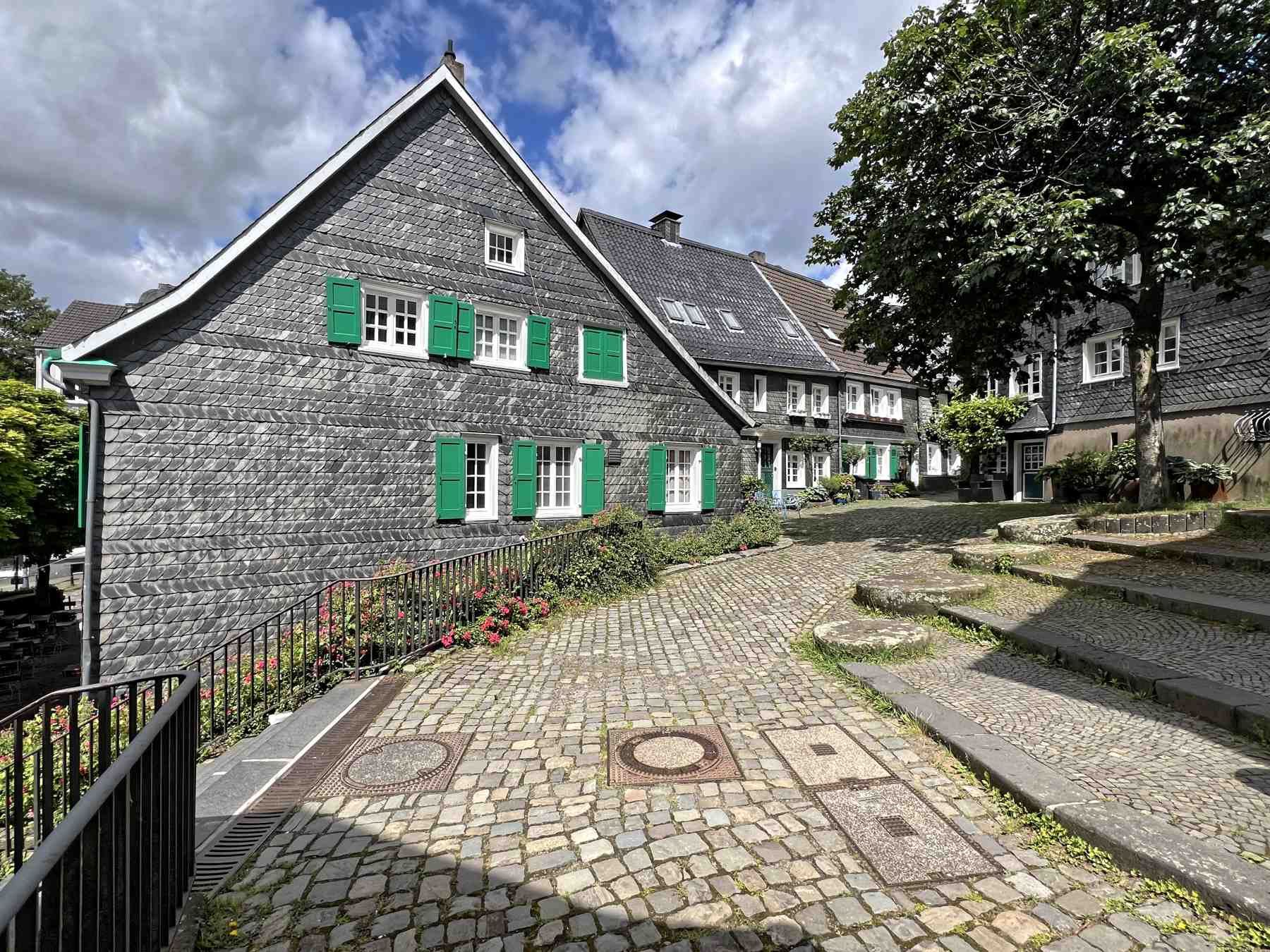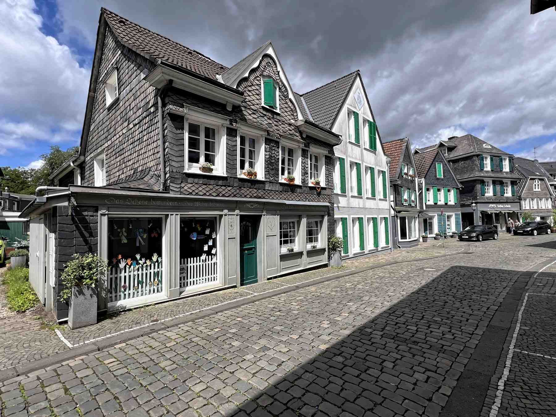 Mit den engen Gassen und den schieferverkleideten bergischen Fachwerkhäusern zeigt sich Gräfrath wie fast ein geschlossenes Bild einer bergischen Kleinstadt.