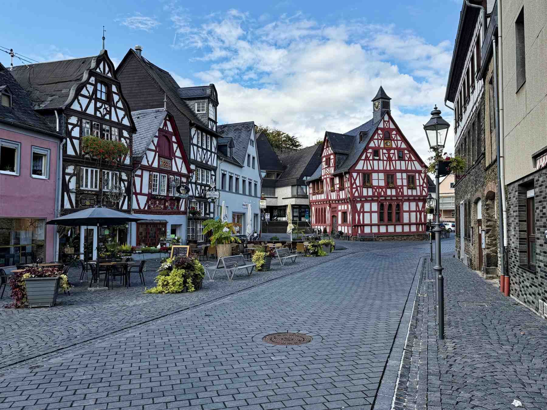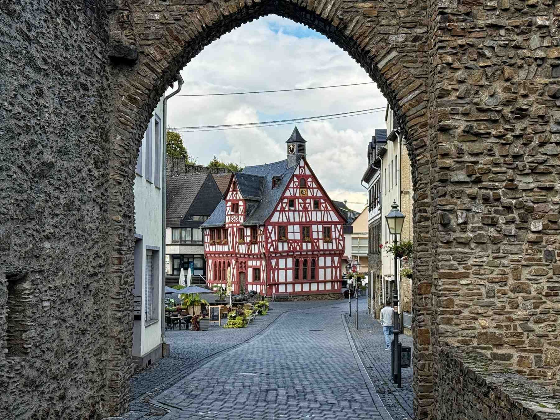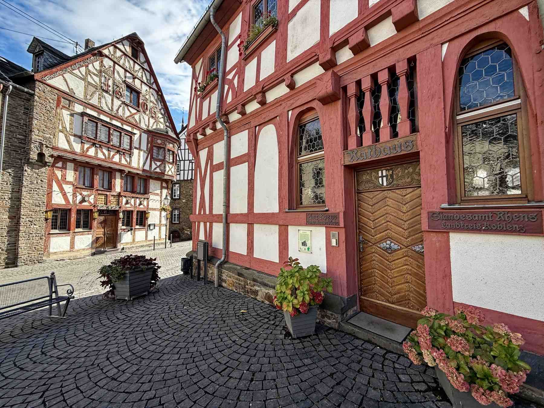 Zwischen Koblenz und Boppard liegt im Oberen Mittelrheintal das historische Städtchen Rhens. Das imposanteste Fachwerkgebäude ist das Alte Rathaus. In der Stadt selbst findet man neben Reste der Stadtmauer noch fünf Tore sowie die Dionysiuskirche mit schönen Deckenmalereien.