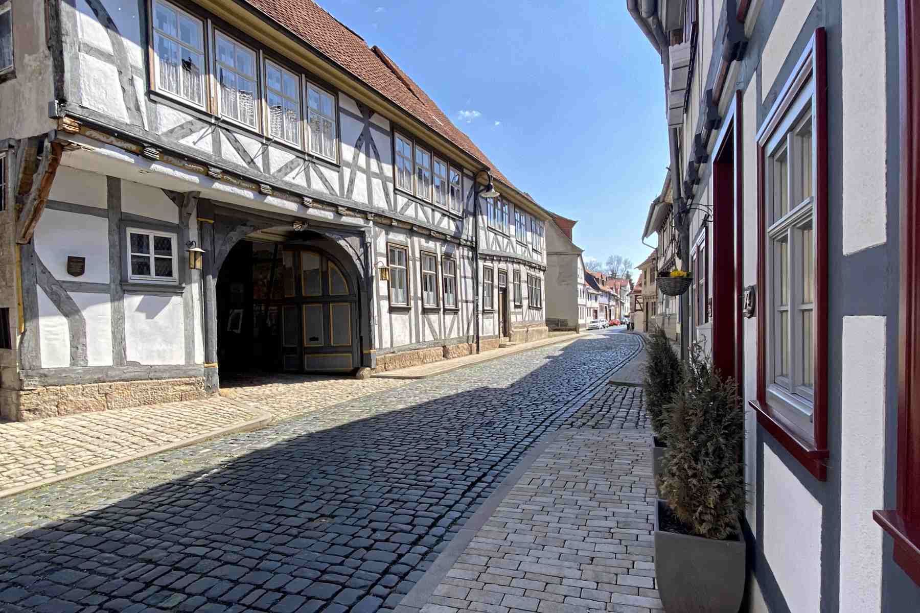 Ohrfeigenhaus : Erbaut 1608 vom hessischen Amtsmann Philipp Bley als Wohnhaus. Den Namen hat das Haus von folgender Begebenheit: Der Amtmann hatte die Genehmigung zum Bau eines bescheidenen Wohnhauses. Als der Landesfürst diesen "Protzbau" sah, versetzte er ihm eine schallende Ohrfeige. So geschehen Anno 1608. Der lateinische Spruch über der Eingangstür nimmt Bezug auf diese Episode (Quelle: Infoschild am Ohrfeigenhaus)