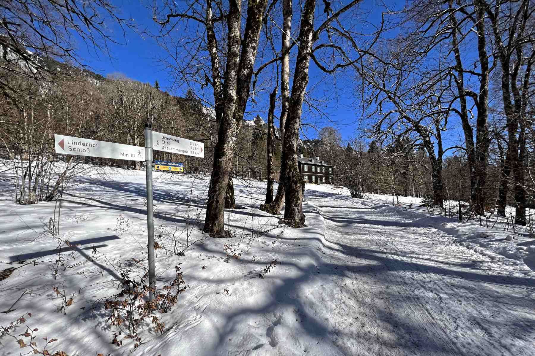 Eine leichte Winterwanderung im Tal der Linder. Zu Beginn der Wanderung lädt das Schloss Linderhof zur Besichtigung ein. Anschließend führt der Weg durch Graswang und über den Sonnenweg in den Passionsspielort Oberammergau. Nicht nur durch die Festspiele ist der Ort bekannt, sondern auch für seine vielfältigen Lüftlmalereien.