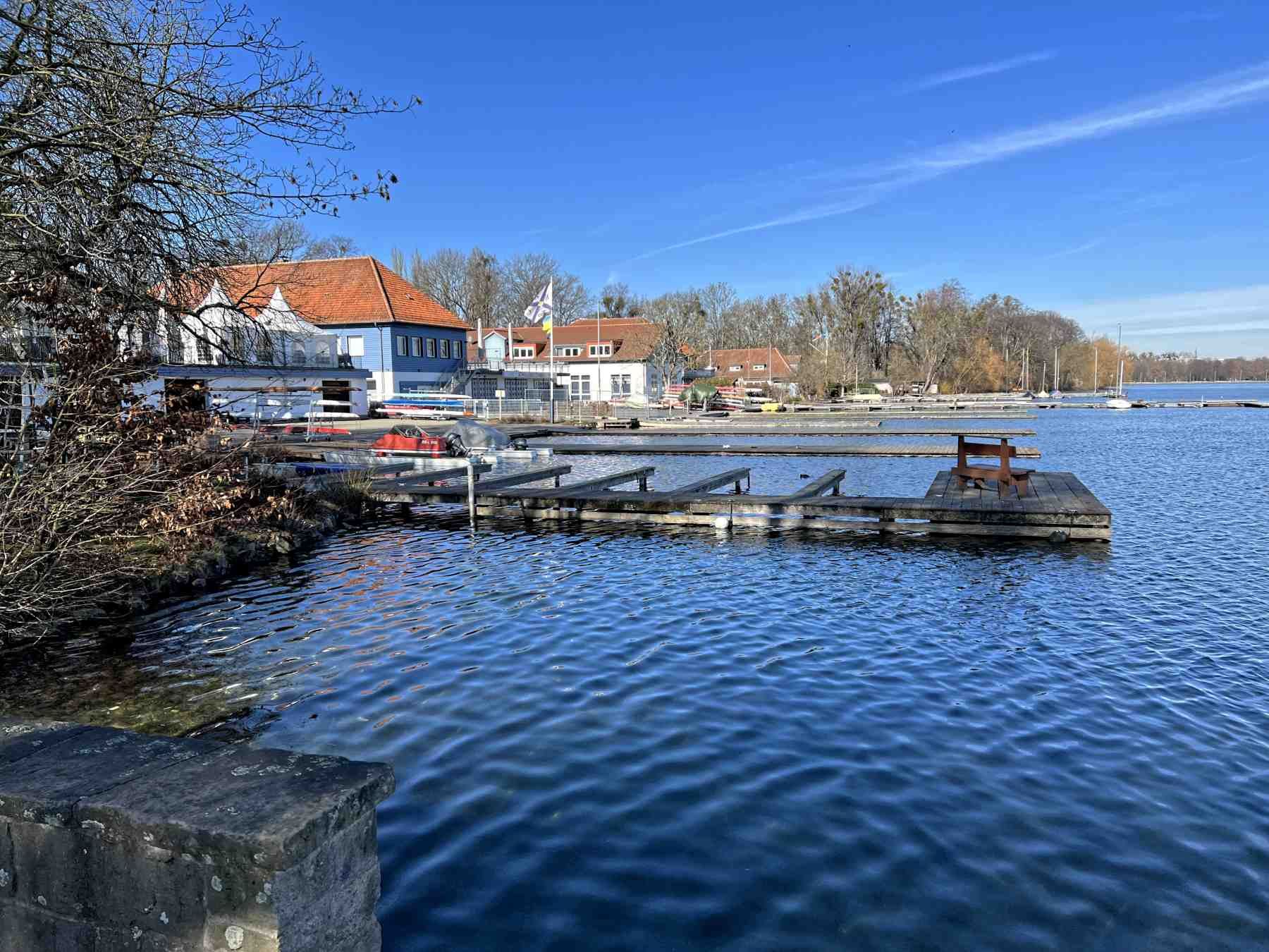 Anschließend erreichen wir das Vereinsgelände des Ruderclubs. Neben einen öffentlichen WC besteht hier die Einkehrmöglichkeit im Biergarten Fährhaus oder bei Claudis Moin.