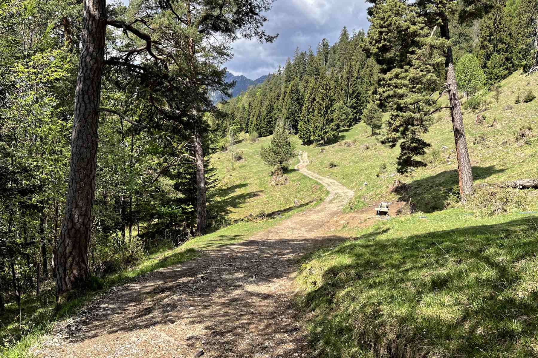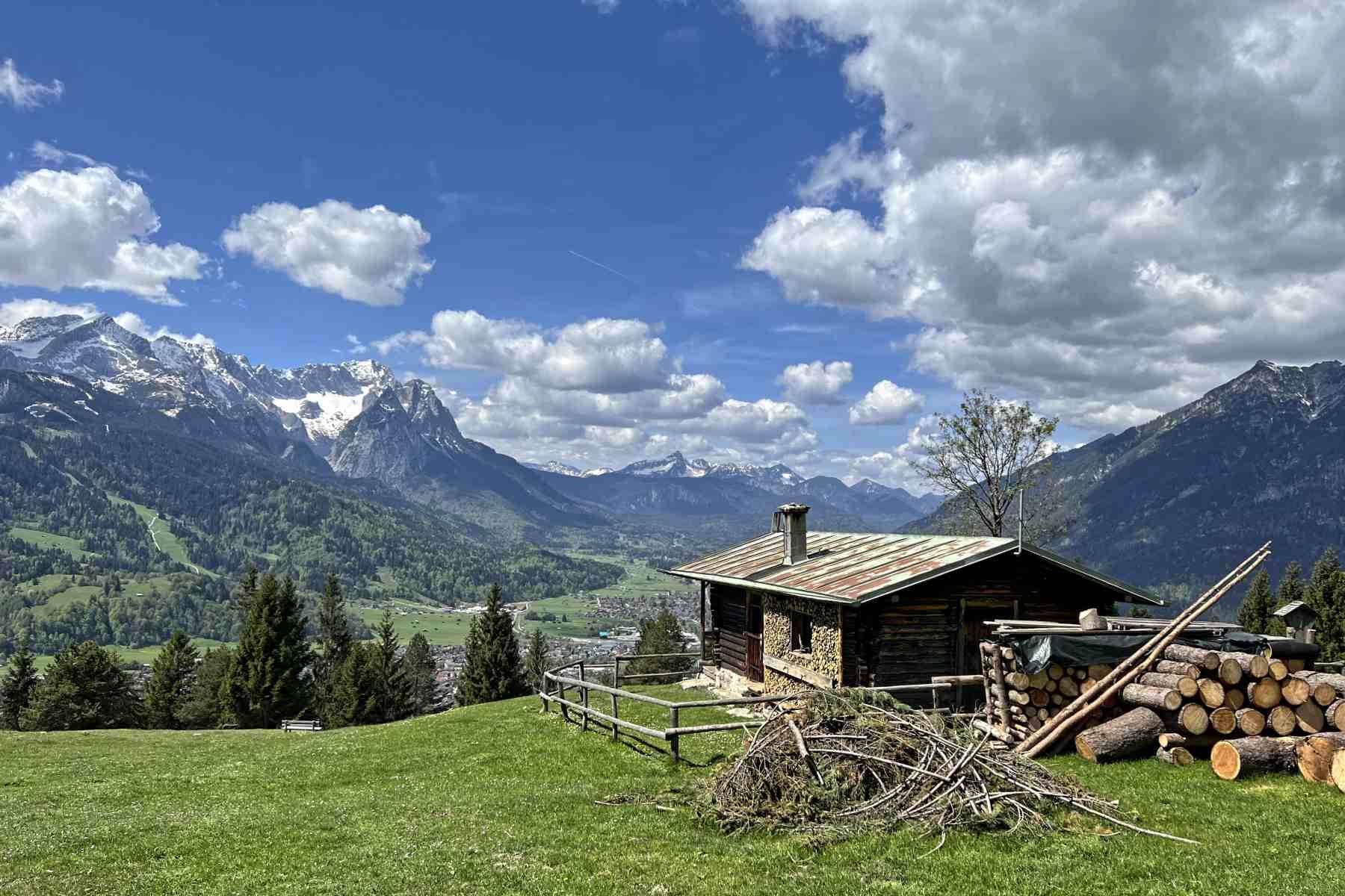 Ab dem Hauptweg begibt man sich talabwärts. Die vielen Bänke an der Eckenhütte (nicht bewirtschaftet) laden ein um hier seine mitgebrachte Brotzeit einzunehmen während man die Aussicht zum Olympiastation und zur Zugspitze genießt.