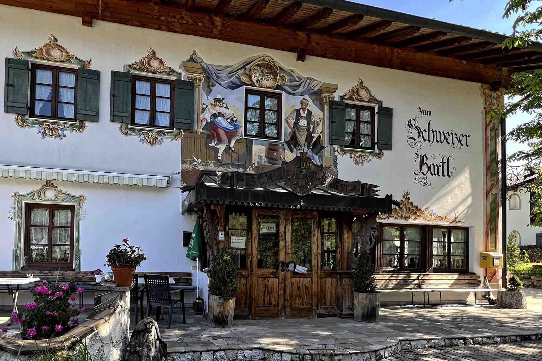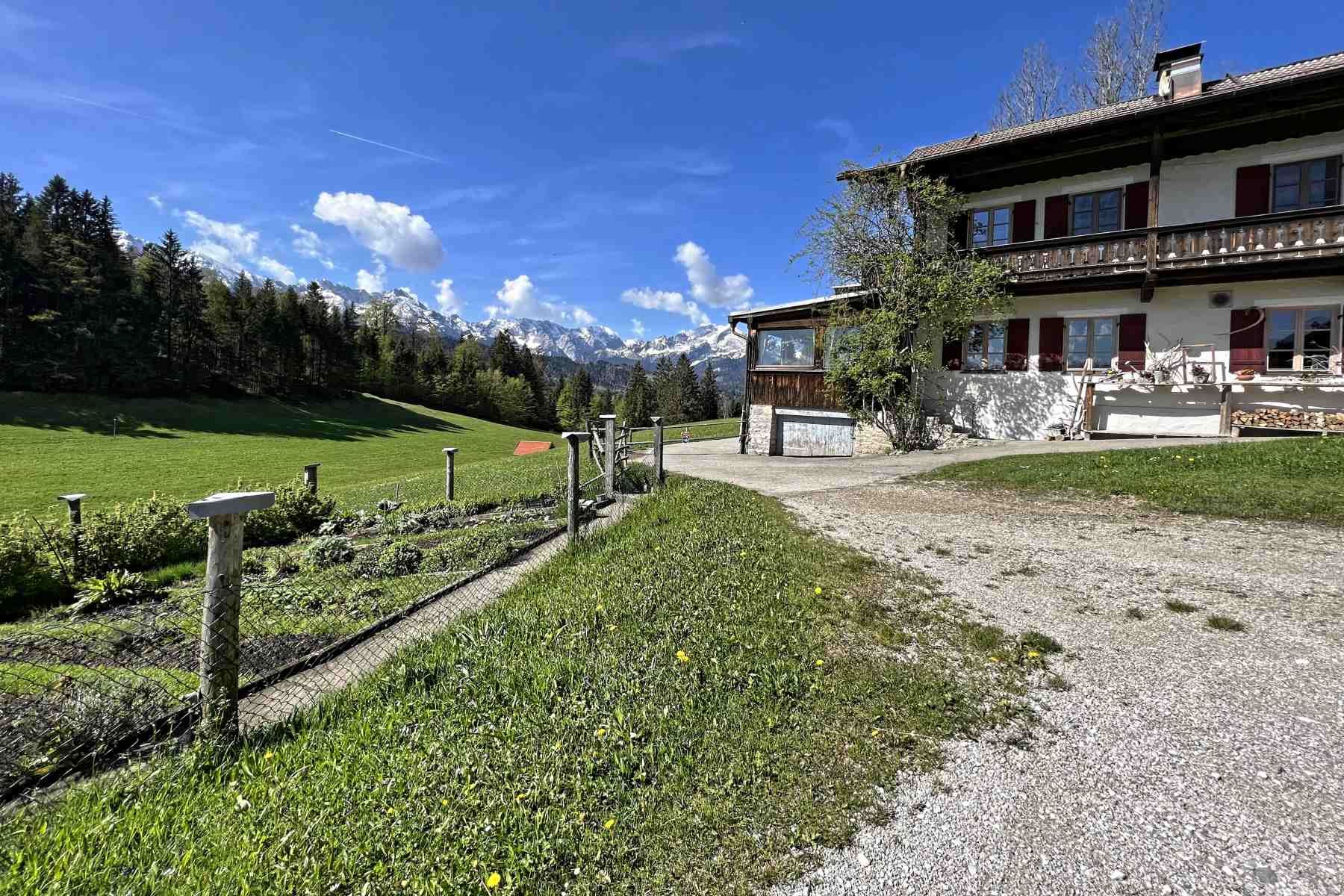Von der Bushaltstelle in Kaltenbrunn folgt man geht man zunächst ein Stück parallel zur Bundestraße in Richtung GAP. Kurz nach Ortausgang folgt man dem Wegweiser Richtung Geschwandtnerbauer (rechts den Schotterweg nehmen). Über ein paar Serpentinen geht es leicht bergauf bis man in einer Kurve die nächste Abzweigung erreicht und weiter gerade aus geht. Nach einem kurzen Waldabschnitt erreicht man eine Almwiese und man sieht nun bereits den Gasthof Geschwandtnerbauer . Gleichfalls kann erstmals das schöne Panorama auf das Wettersteingebirge genießen. Bei meiner Wanderung hatte der Gasthof lediglich am Sa und So geöffnet.