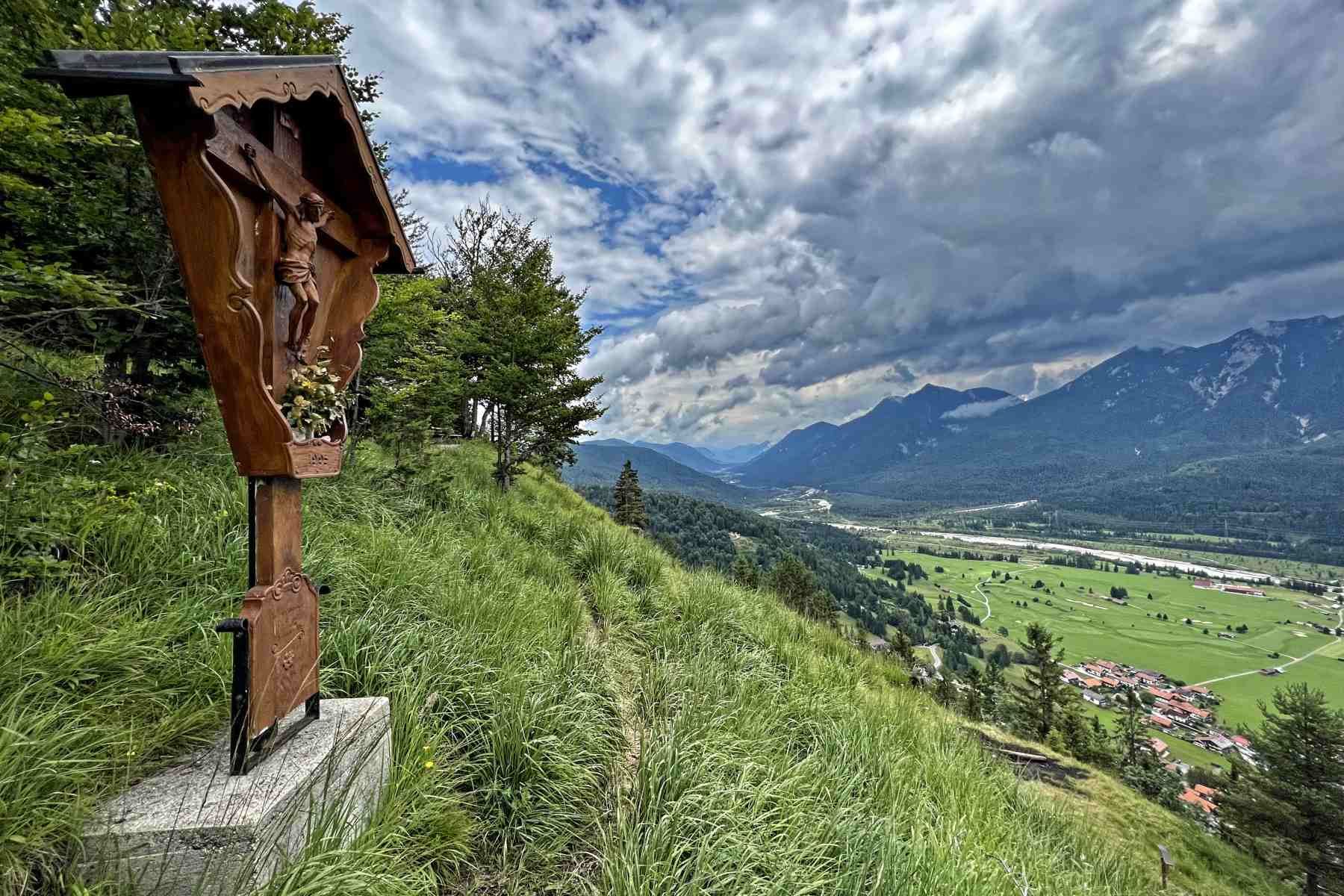 Eine leichte Wanderung auf den 1.160 m hohen Krepelschrofen. Dieser liegt oberhalb von Wallgau ist einer der schönsten Aussichtspunkte auf das Isartal in der Alpenwelt Karwendel.