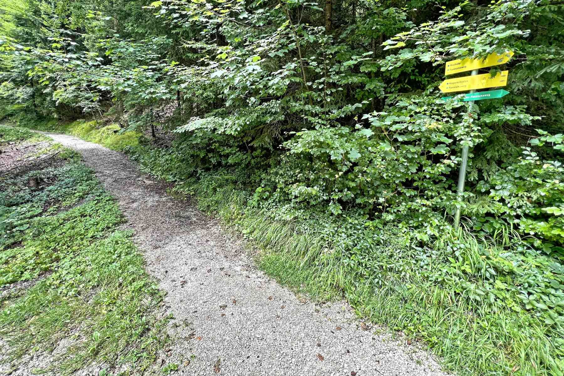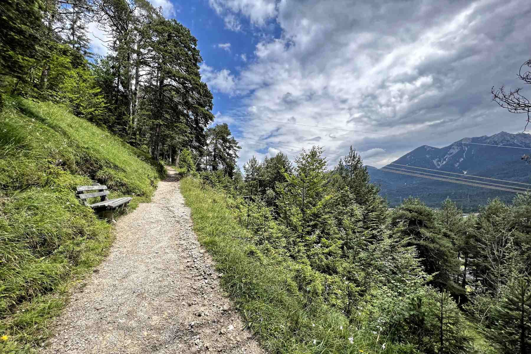 Auf gleichem Weg gehen wir talwärts zurück zum Magdalena-Neuner-Panorama Weg der uns zum Ortzentrum Wallgau führt.