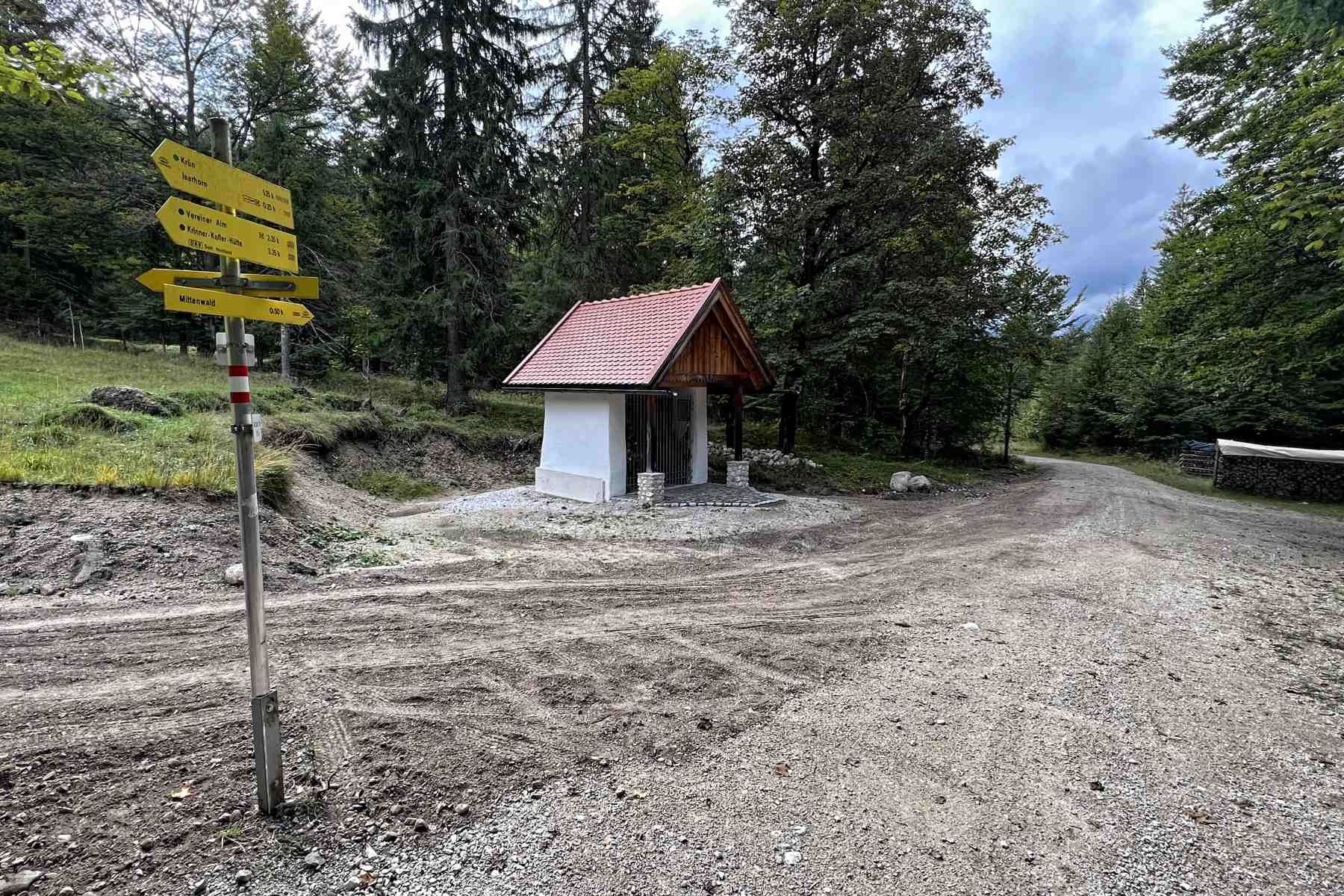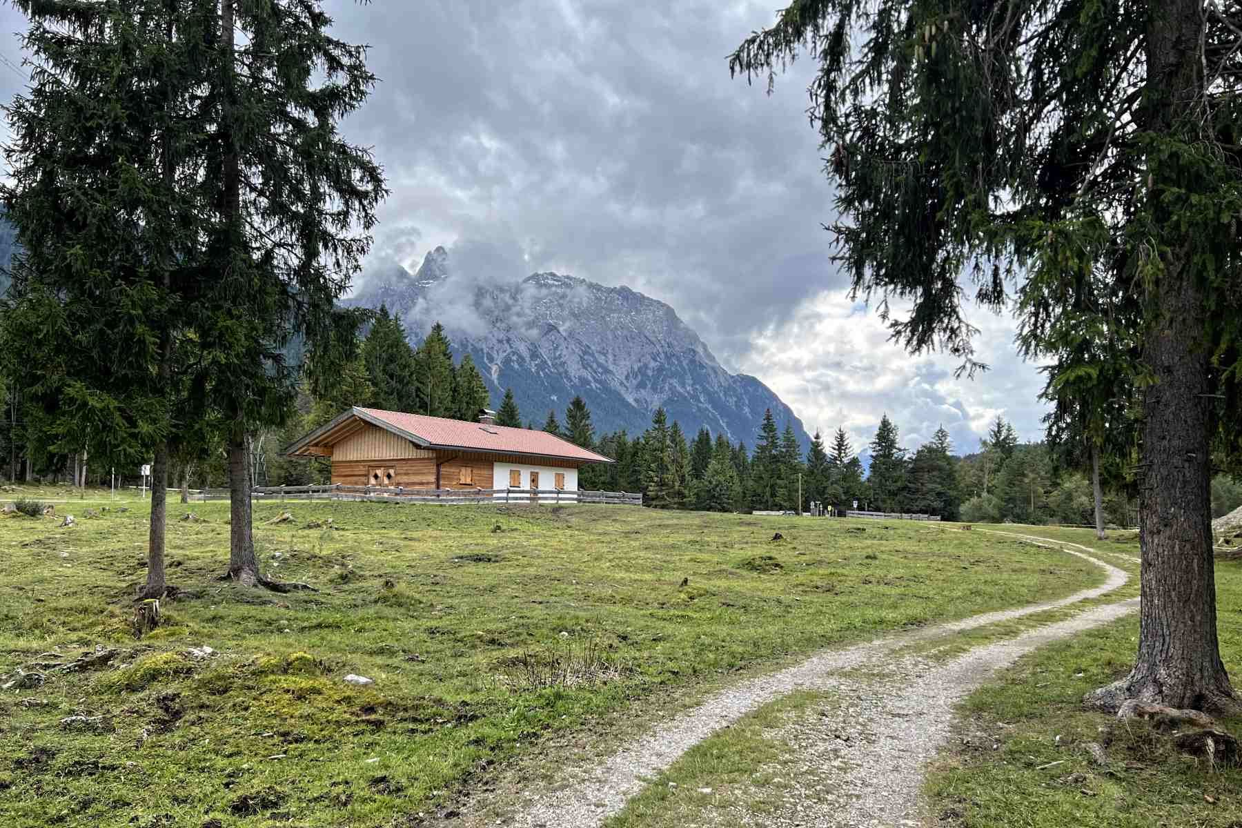 Nach dem Überschreiten des Stegs gehen wir rechts in Richtung Krün. Hinter Krün führt der Weg am Isarstausee vorbei, weiter in Richtung Mittenwald (Isaruferweg). Vorbei an der Schießanlage der Bundesweh und weiter zur Seinsalm (nicht bewirtschaftet). An der folgenden Weggabelung folgen wir der Forststraße in Richtung Aschauer Alm (nicht bewirtschaftet). Nachdem wir etwa 15 min auf der Forststraße unterwegs waren biegt ein Weg nach rechts in den Wald ab. Kurz darauf führt ein Steg über den Seinsbach und an der Lichtung angekommen liegt links die Aschauer Alm.