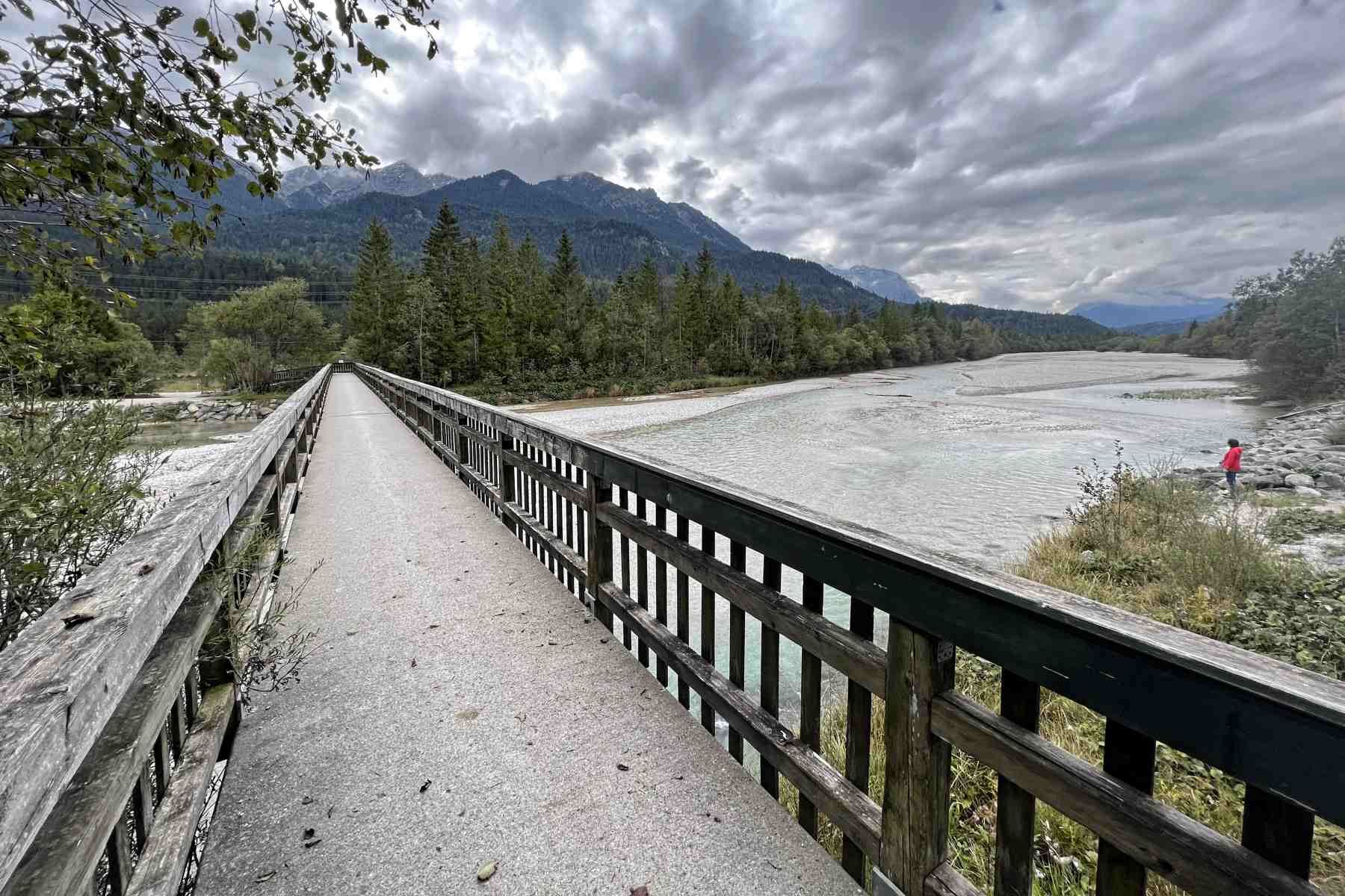 TIPP: Bei Regenwetter kann die Tour an folgenden Bushaltestellen abgekürzt werden: Ortsmitte Krün, Isarhorn Mittenwald oder Kasernen Mittenwald.