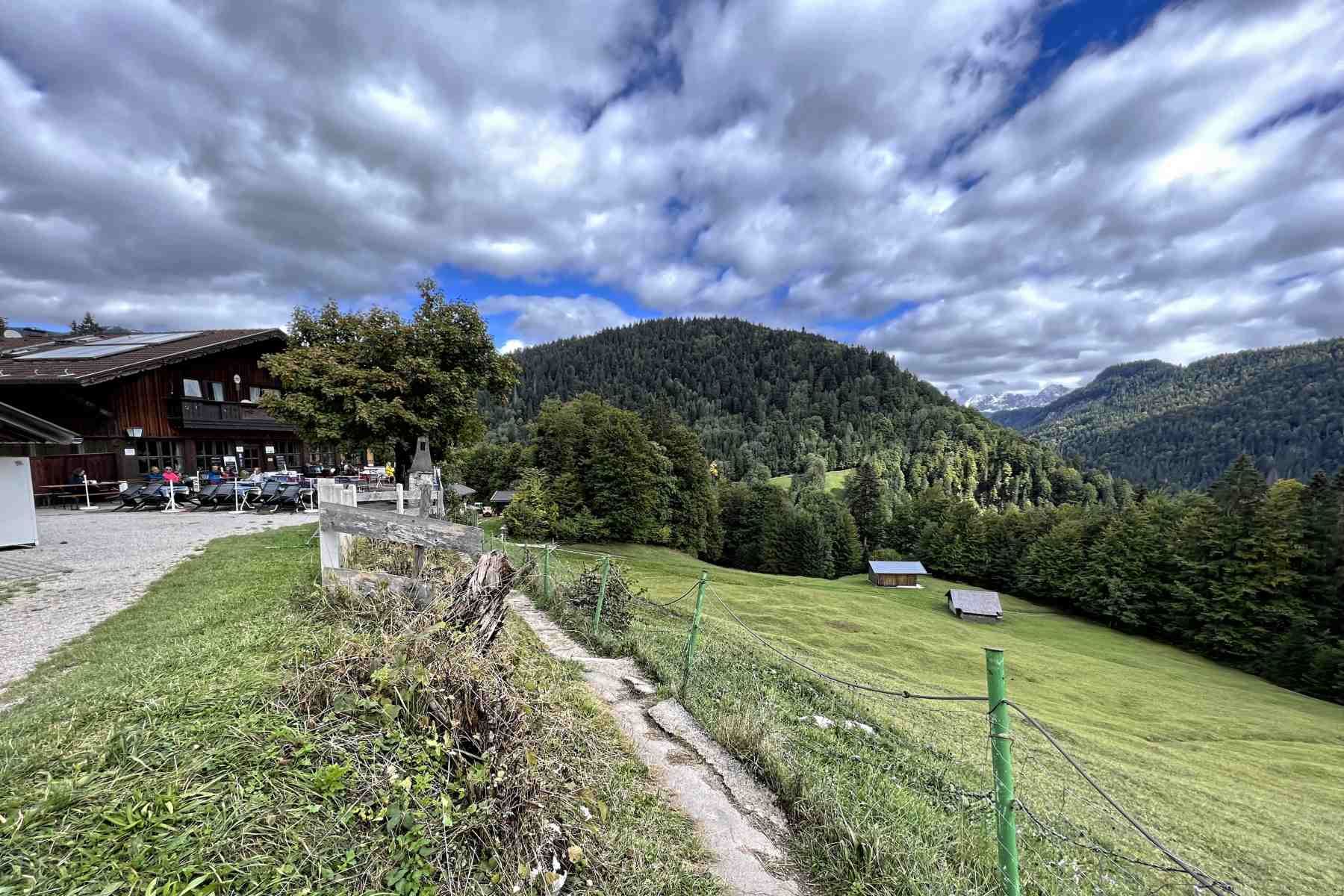 Für den etwas steilen Weg benötigen wir etwa 30 min bis zur Alm. Hier bietet sich eine Einkehr an. Im weiteren Verlauf besteht dann noch eine Einkehr in der Kochelbergalm. Diese Alm erreichen wir 30 min nach Verlassen der Partnachalm: Zunächst folgen wir der talwärts führenden Straße und biegen nach 15 min links in den Wald (Wegweiser).