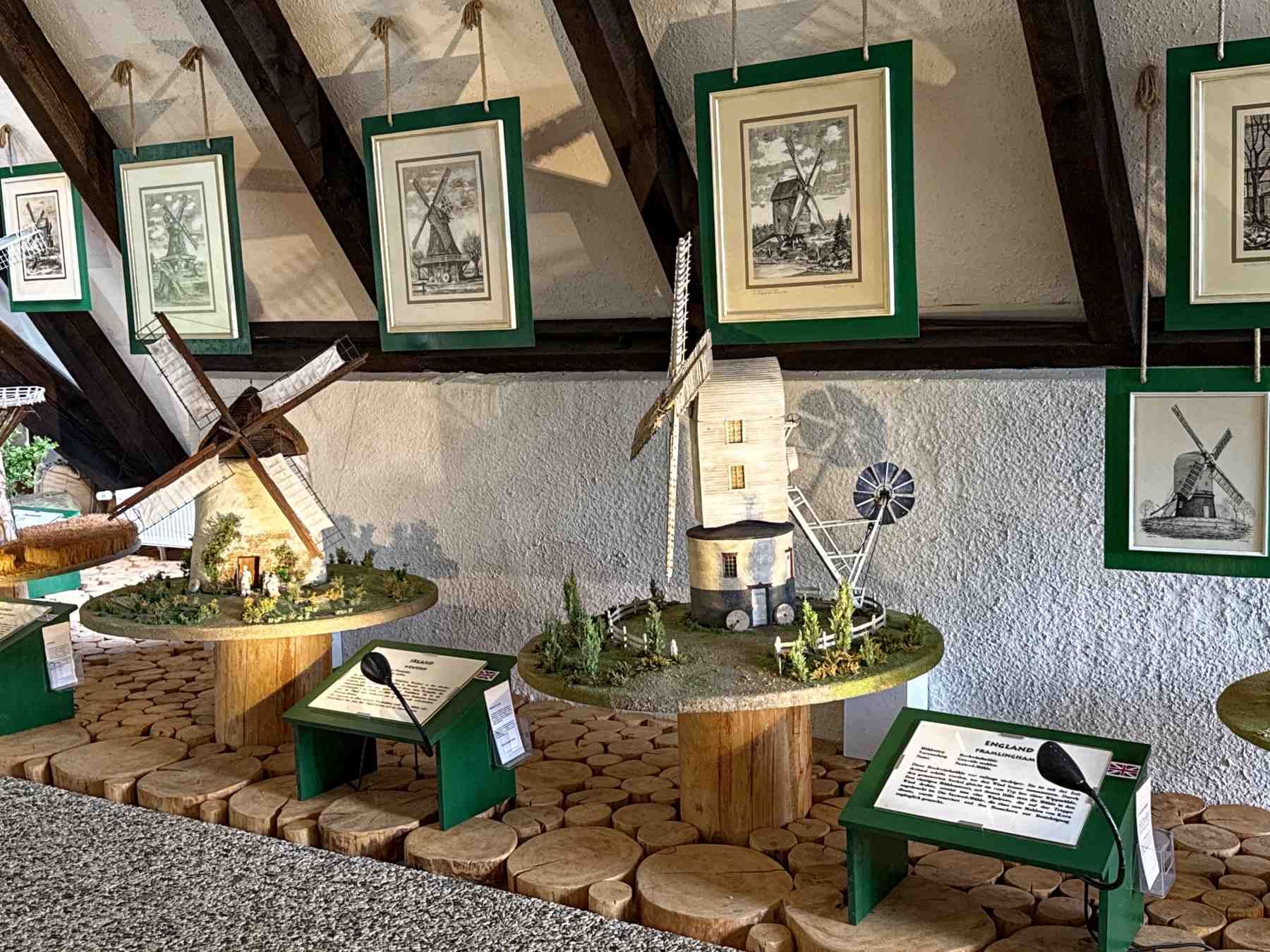 In dem über 800 m² große Ausstellungsgebäude des Museums sind über 50 Miniaturmodelle verschiedener Mühlentypen aus 20 Ländern ausgestellt, dabei erhalten wir einen Überblick über die Verbreitung und Arbeitsweise der unterschiedlichen Mühlentypen. In dieser Ausstellung werden wir auch über die Geschichte und Entwicklung des Müllereiwesens umfassend informiert.